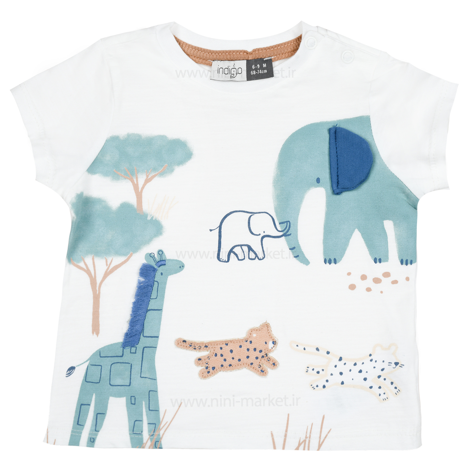 تیشرت شورت پسرانه مدل ساوانا طرح جنگل ایندیگو Indigo از الیاف پنبه بوده و بسیار نرم و لطیف است و نوزاد در آن احساس راحتی میکند. الیاف از پنبه درجه یک تهیه شده است و مادران با خیال راحت میتوانند این ست را برای فرزند خود تهیه کنند. ست دو تیکه ایندیگو شامل شورت – تیشرت آستین کوتاه می باشد. شورت این ست خاکی ساده می باشد و در قسمت کمر شلوار یک کش نصبتا پهن کار شده است که باعث می شود کمترین فشار ممکن به کمر بچه بیاید. یقه تیشرت گرد و آستین کوتاه به رنگ سفید و طرح روی لباس جنگل می باشد که به صورت رنگی چاپ شده که زیبای آن را چندین برابر کرده است
