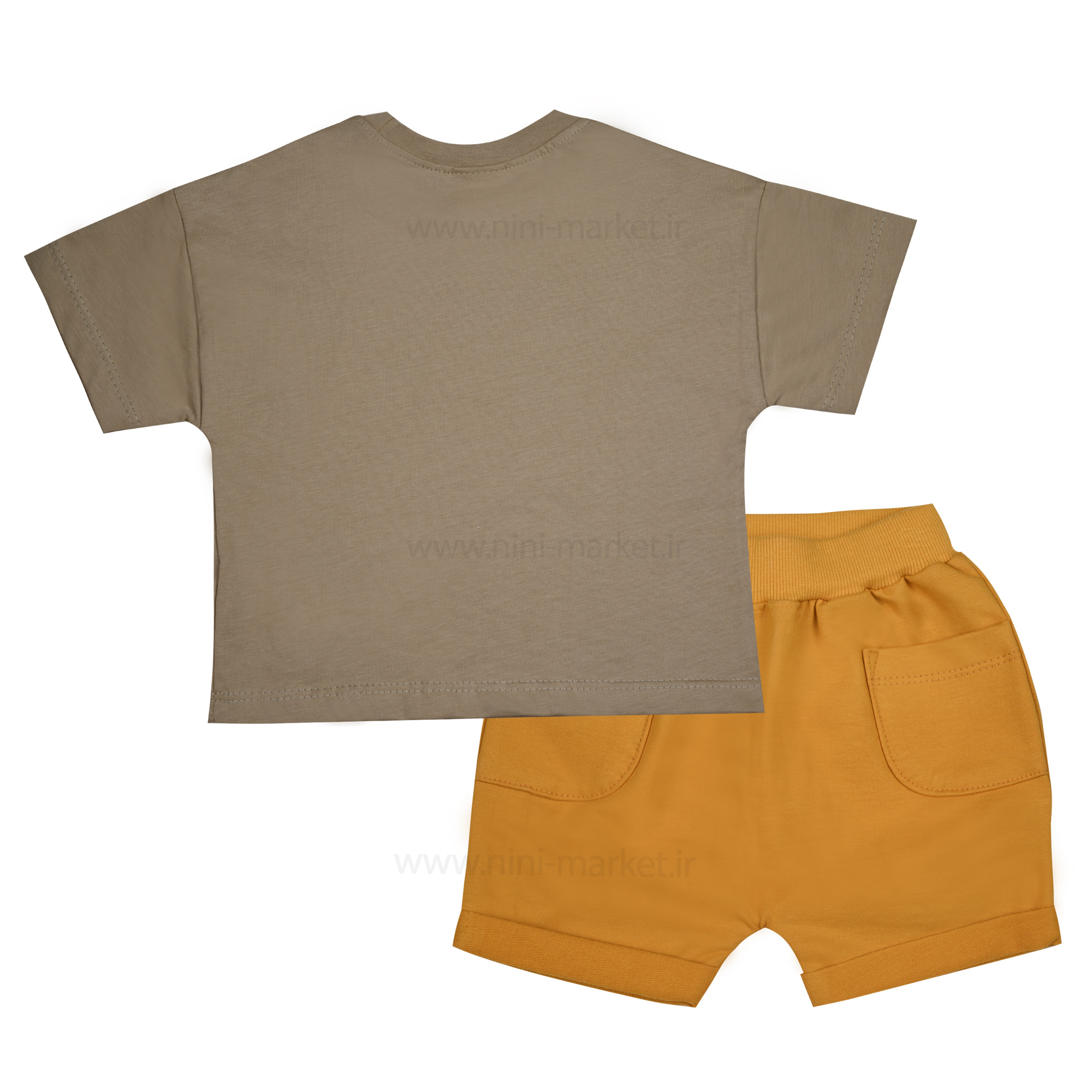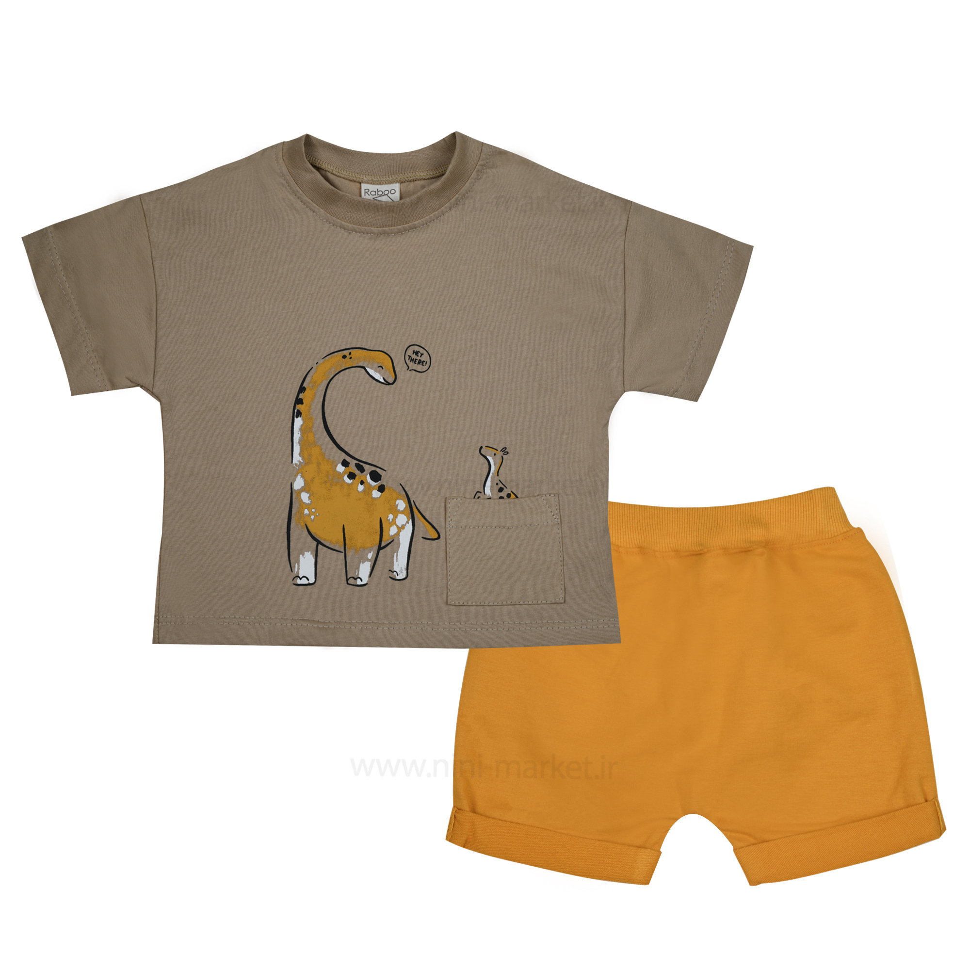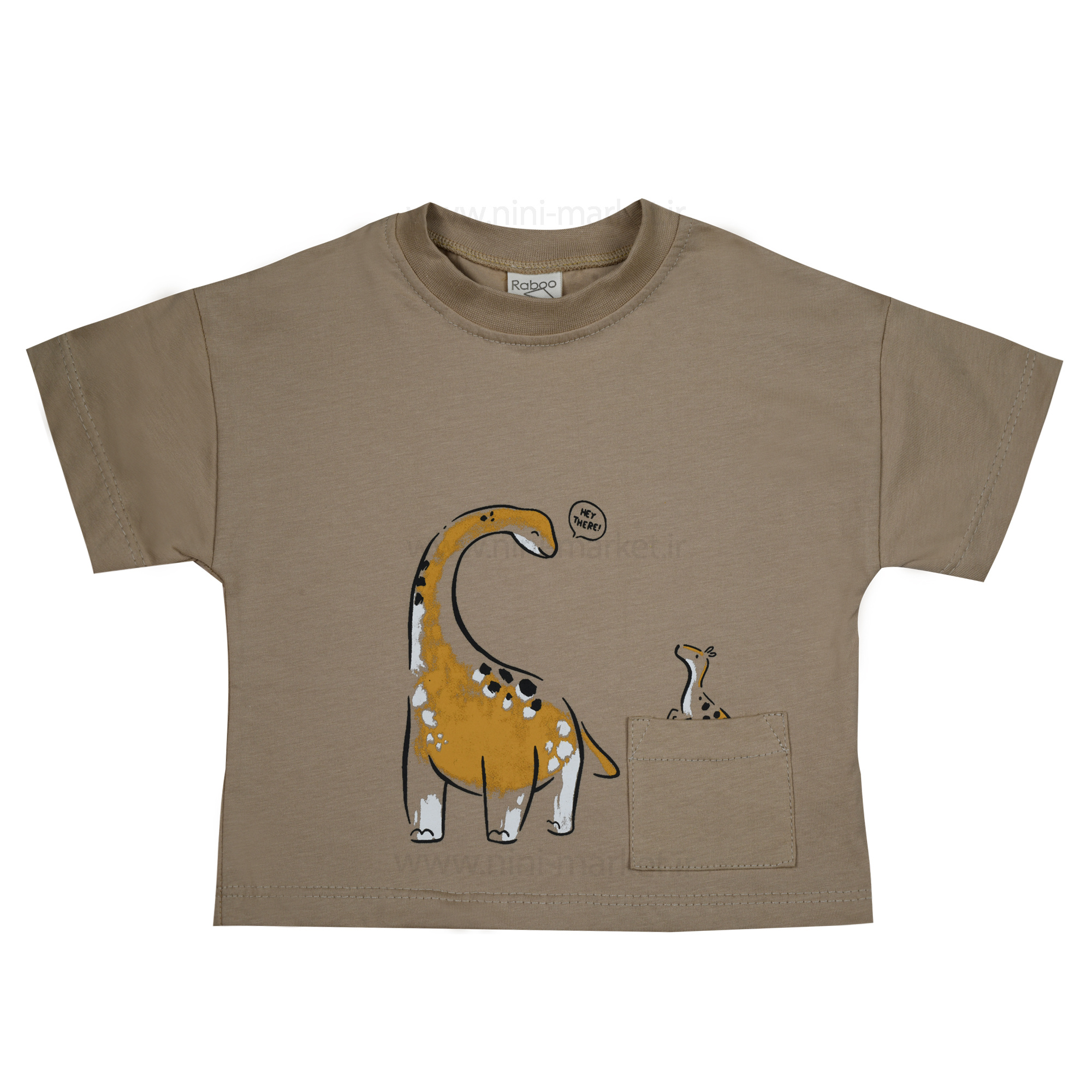 تیشرت شورت پسرانه طرح دایناسور رنگ خاکیRaboo