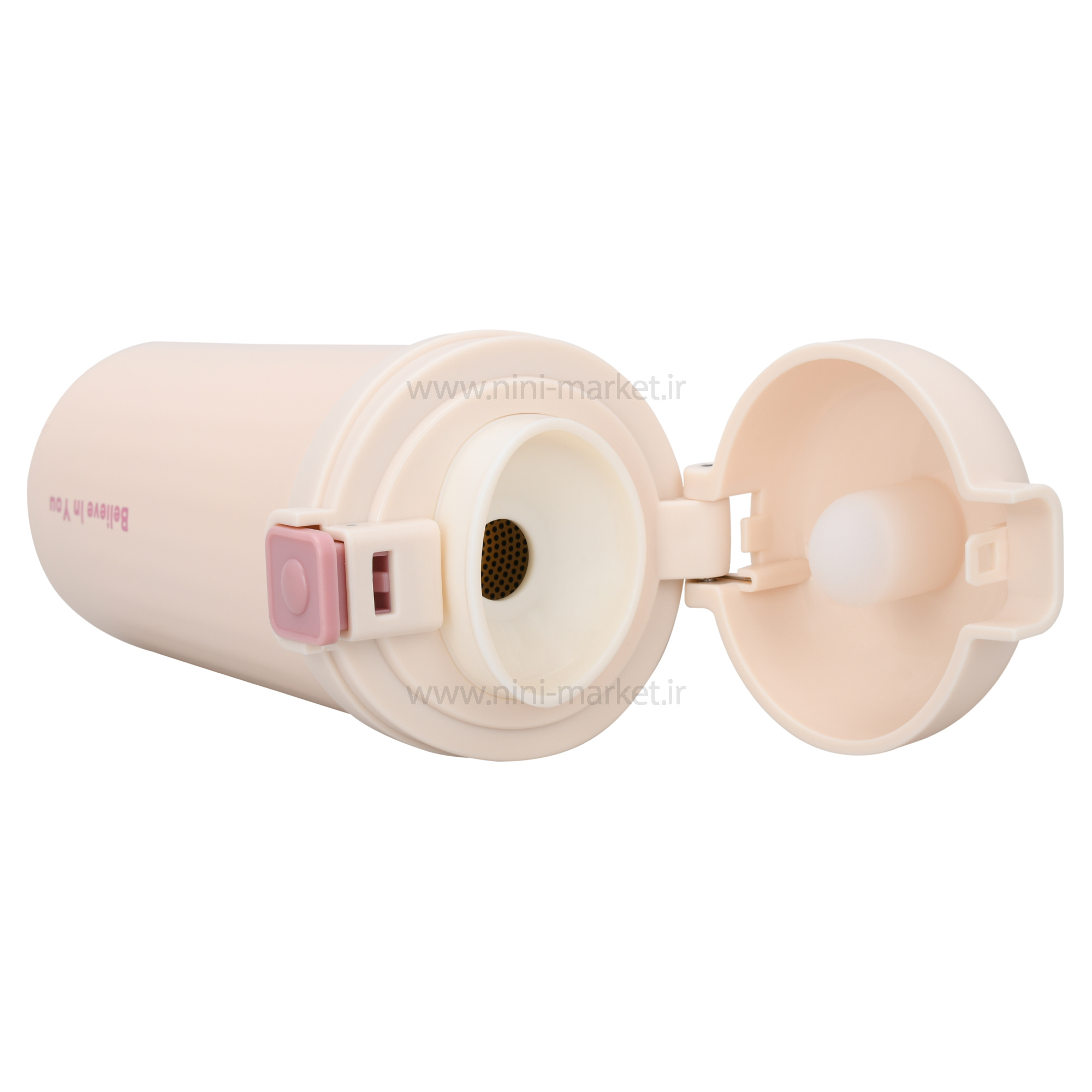 در این فلاسک با فشار یک دکمه باز می‌شود. دهانه‌ی پهن آن امکان قرار دادن یخ یا برش‌های میوه را فراهم کرده و تمیز کردنش را ساده می‌سازد. درپیچ ضدنشت آن طوری طراحی شده که حتی اگر بطری وارونه شود، قطره‌ای نشت نمی‌کند. وزن سبک و ابعاد جمع‌وجور آن باعث شده تا حملش برای کودک راحت باشد؛ در مدرسه، گردش یا مهمانی به راحتی میتوان آن را حمل و از آن استفاده کرد. شما میتوانید این محصول زیبا و کاربردی را از سیسمونی نی نی مارکت تهیه کنید.