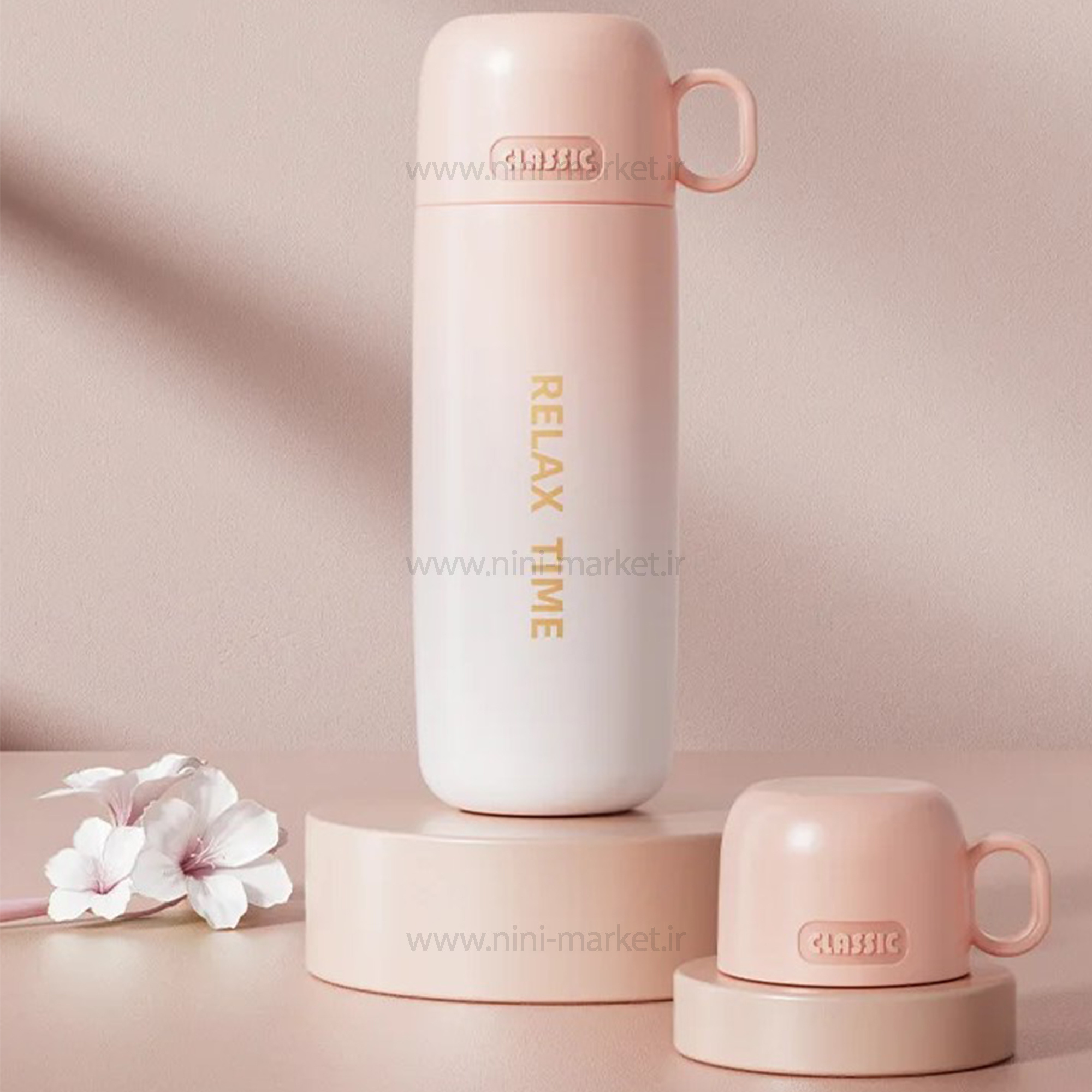 فلاسک آب 500 ميل رنگ گلبهی خارجی
