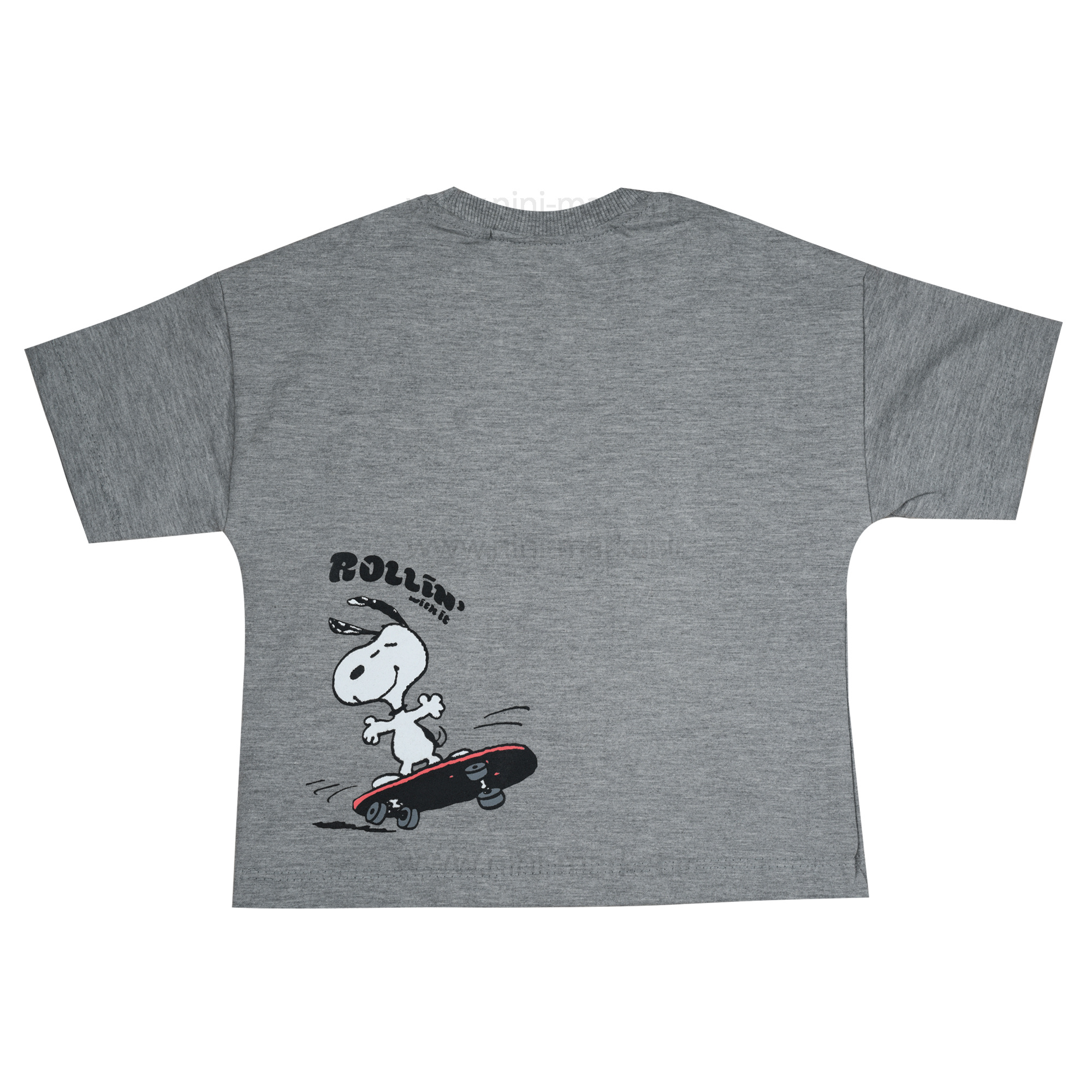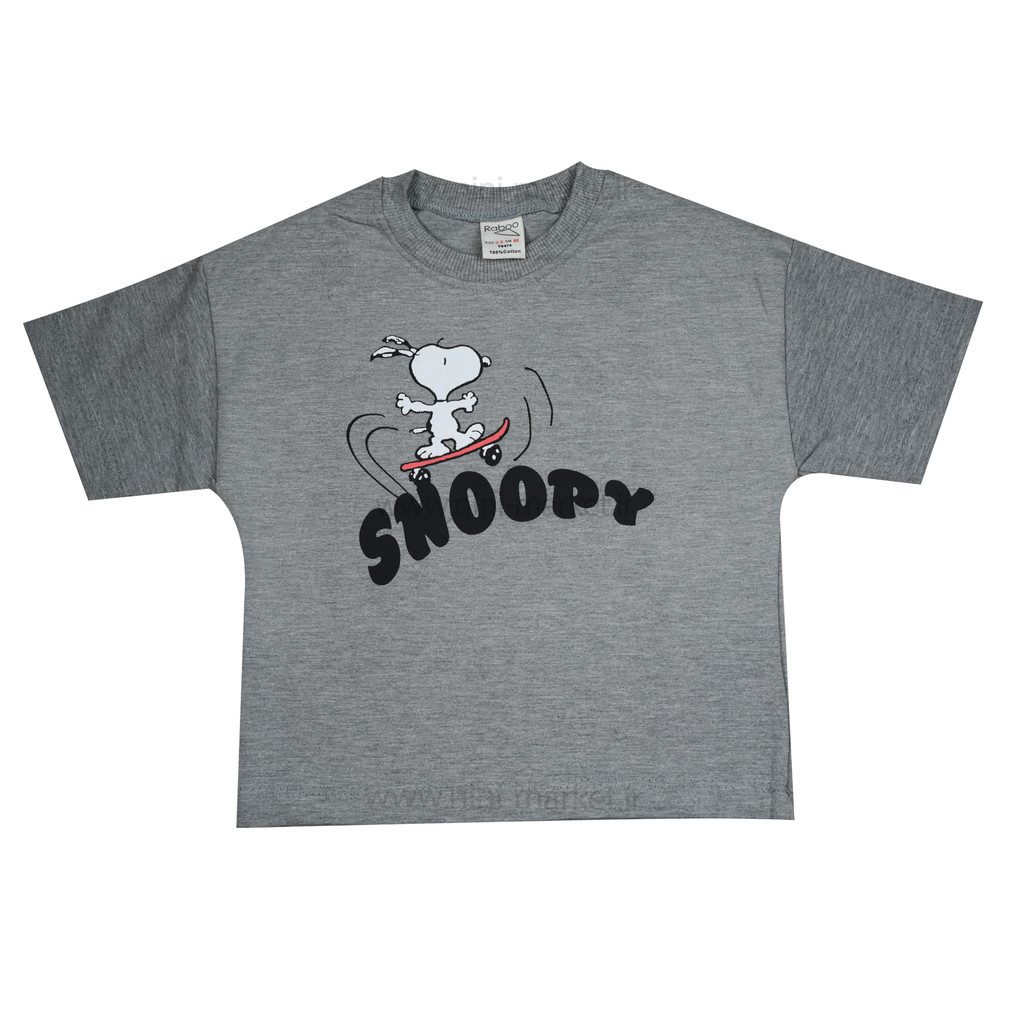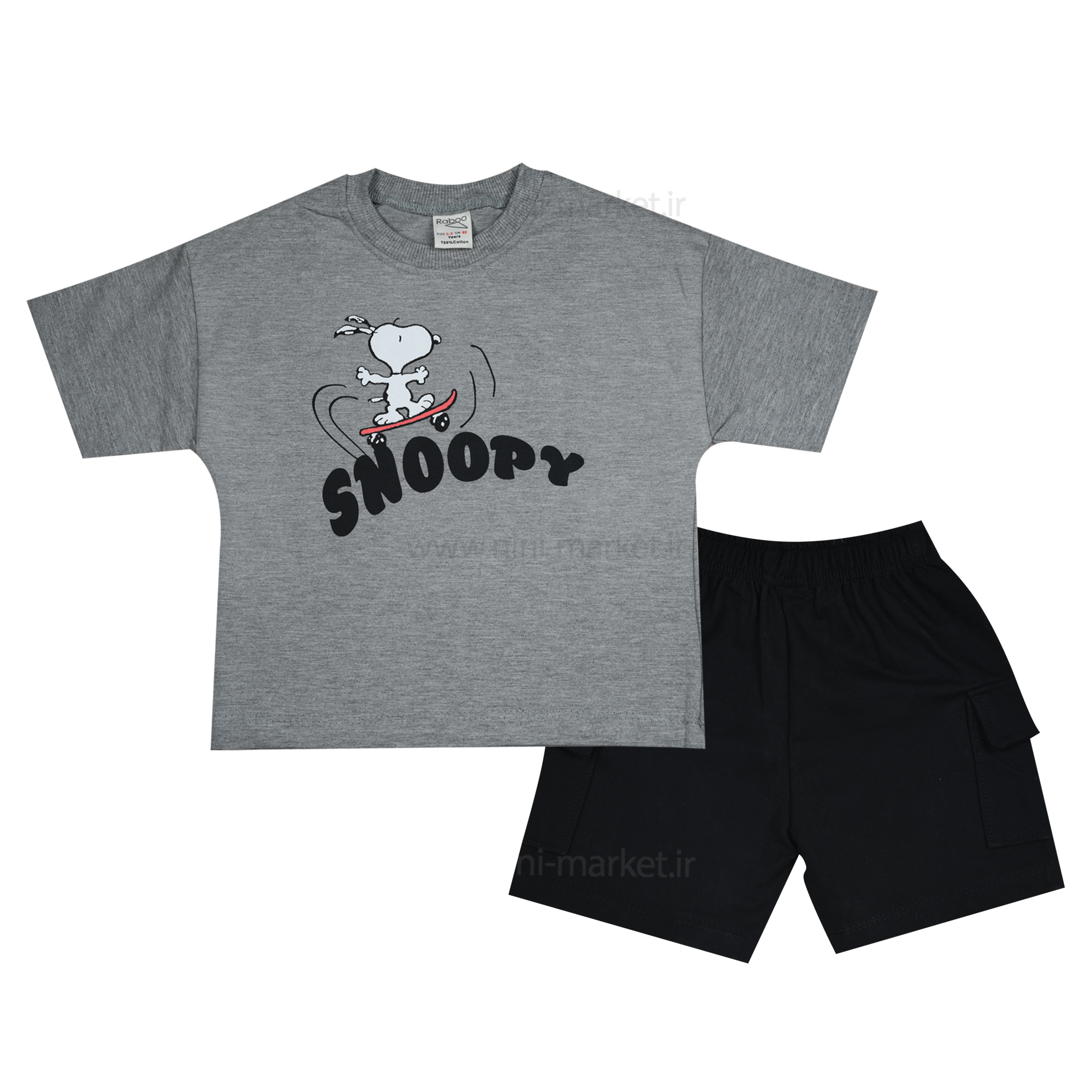 تیشرت شورت پسرانه طرح اسنوپی رنگ طوسی Raboo