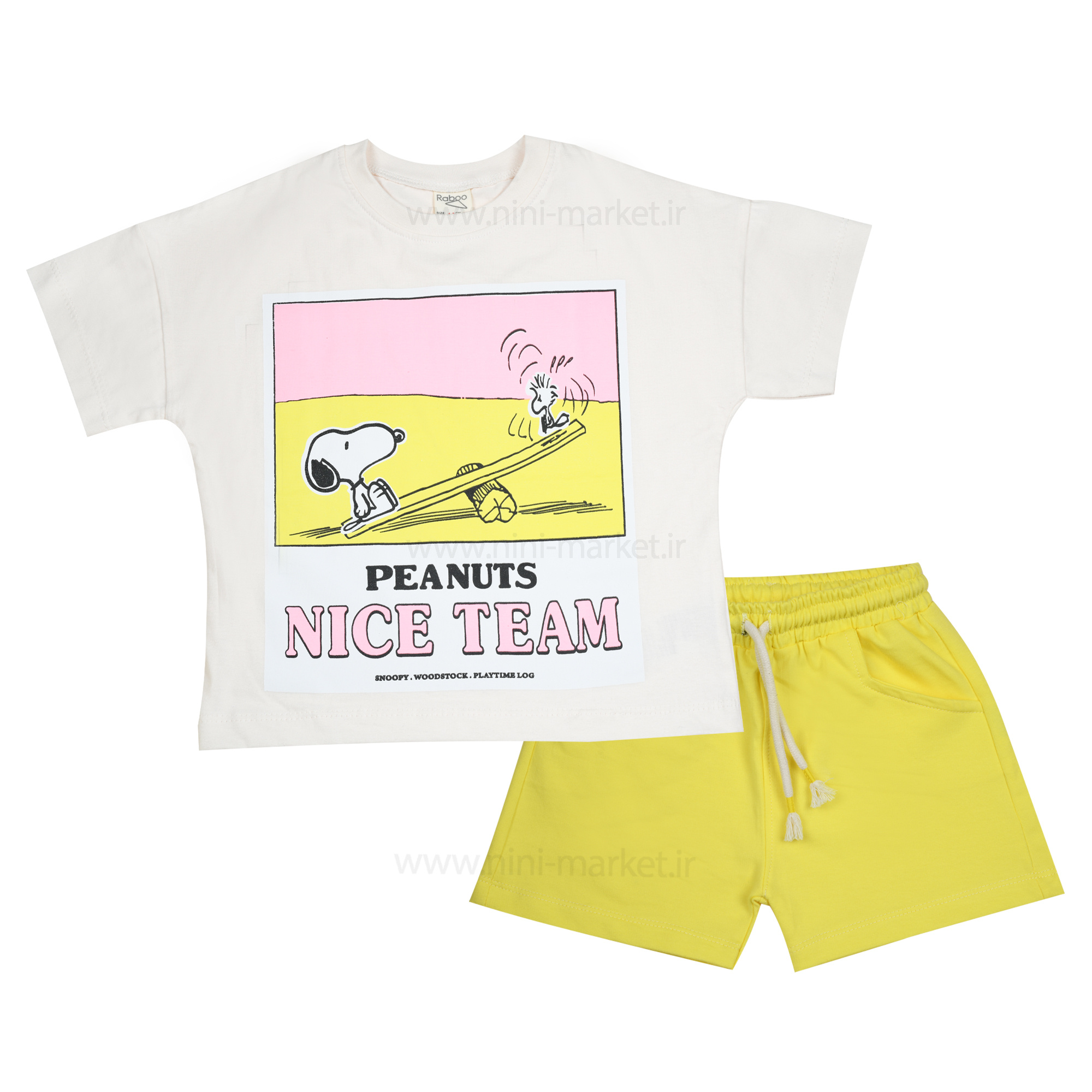 تیشرت شورت اسپرت طرح اسنوپی رنگ زرد رابو Raboo