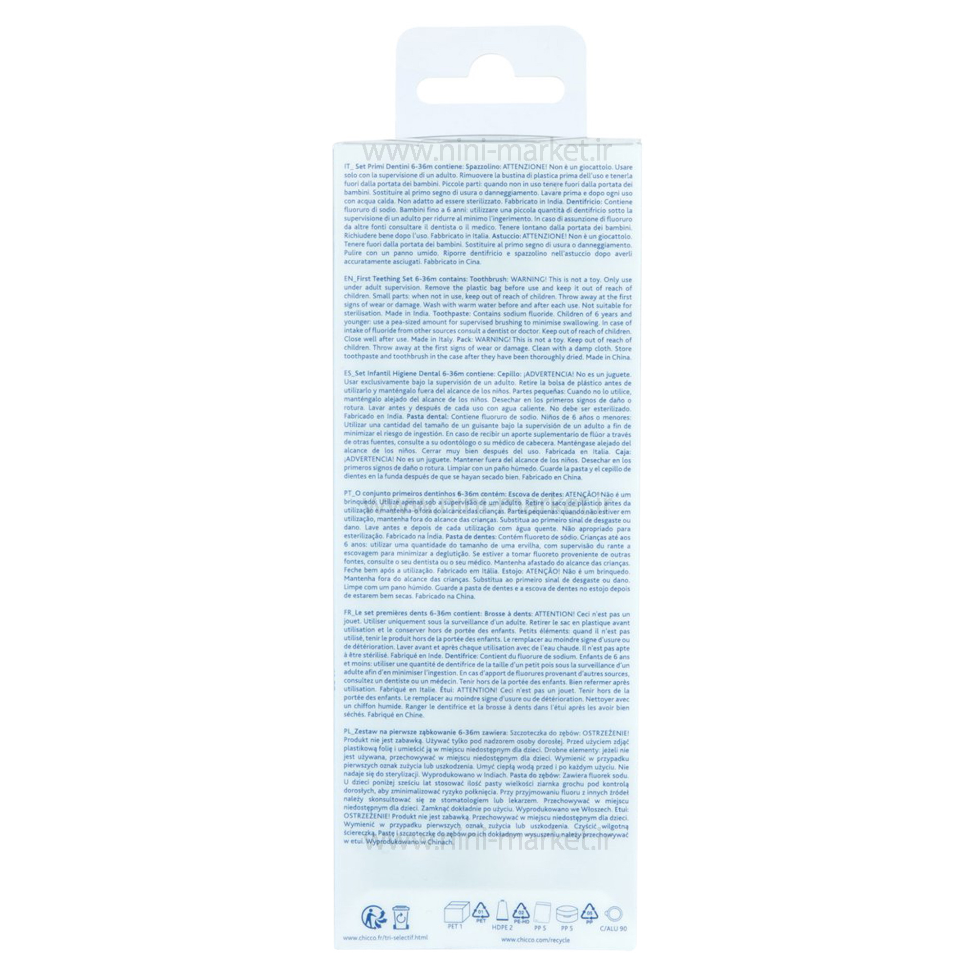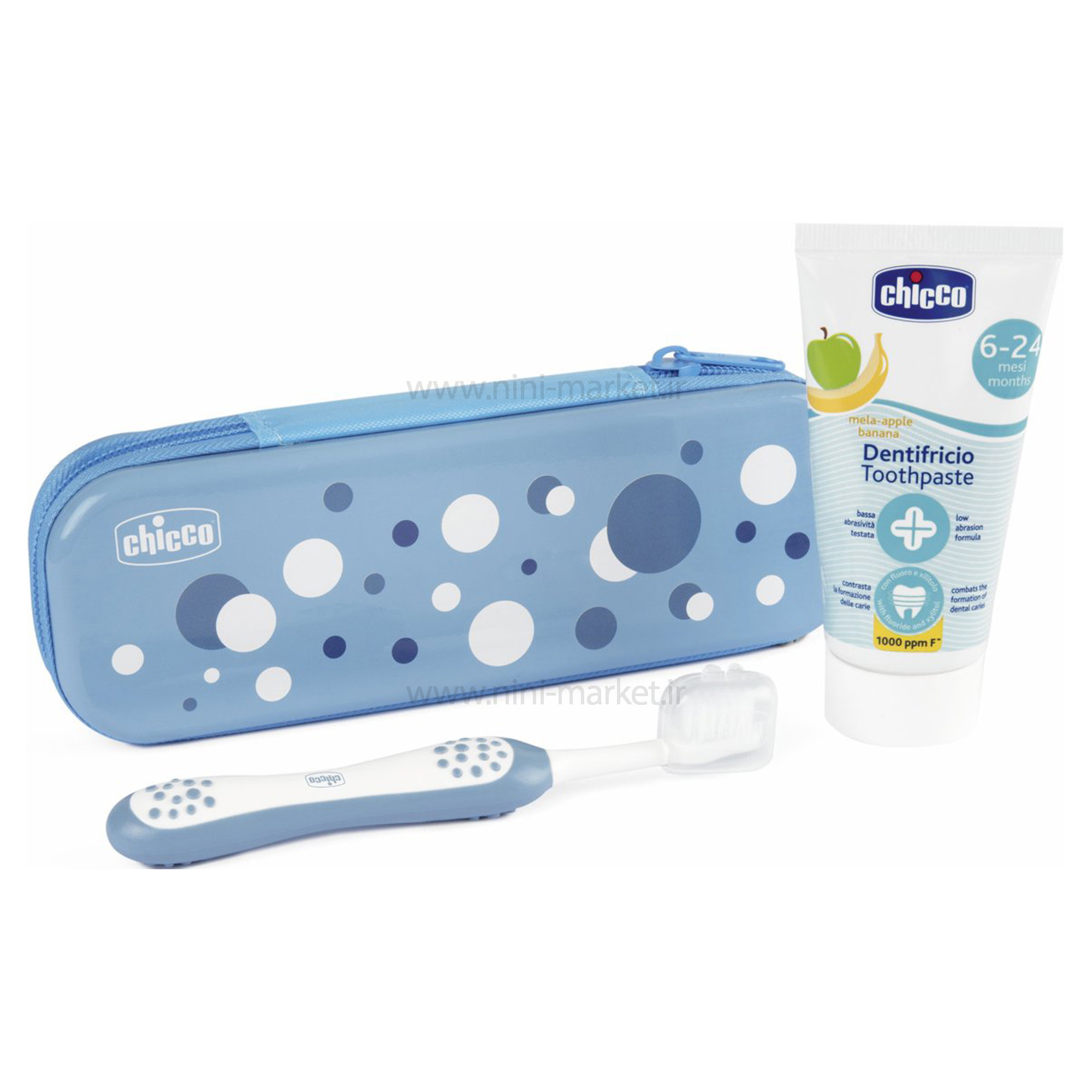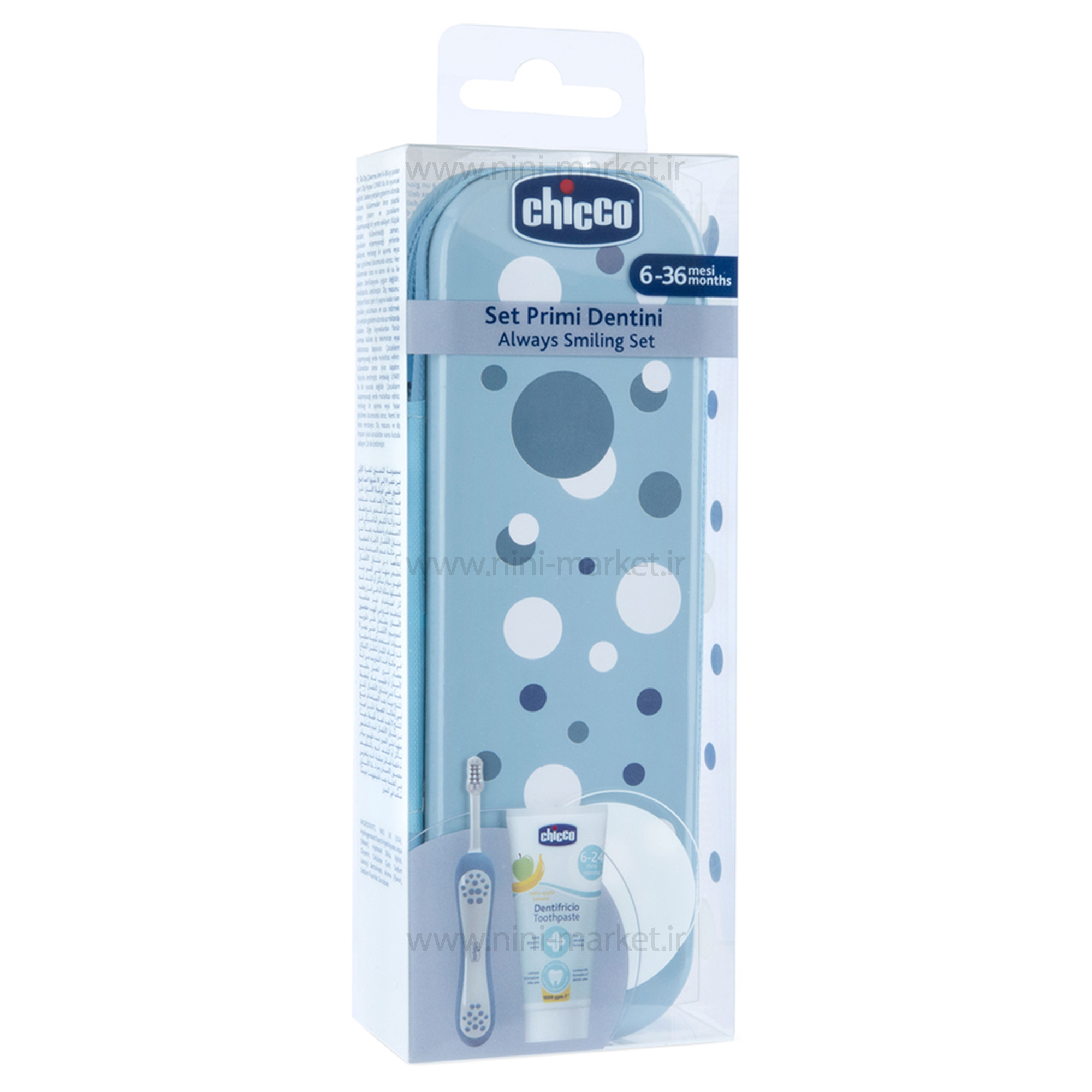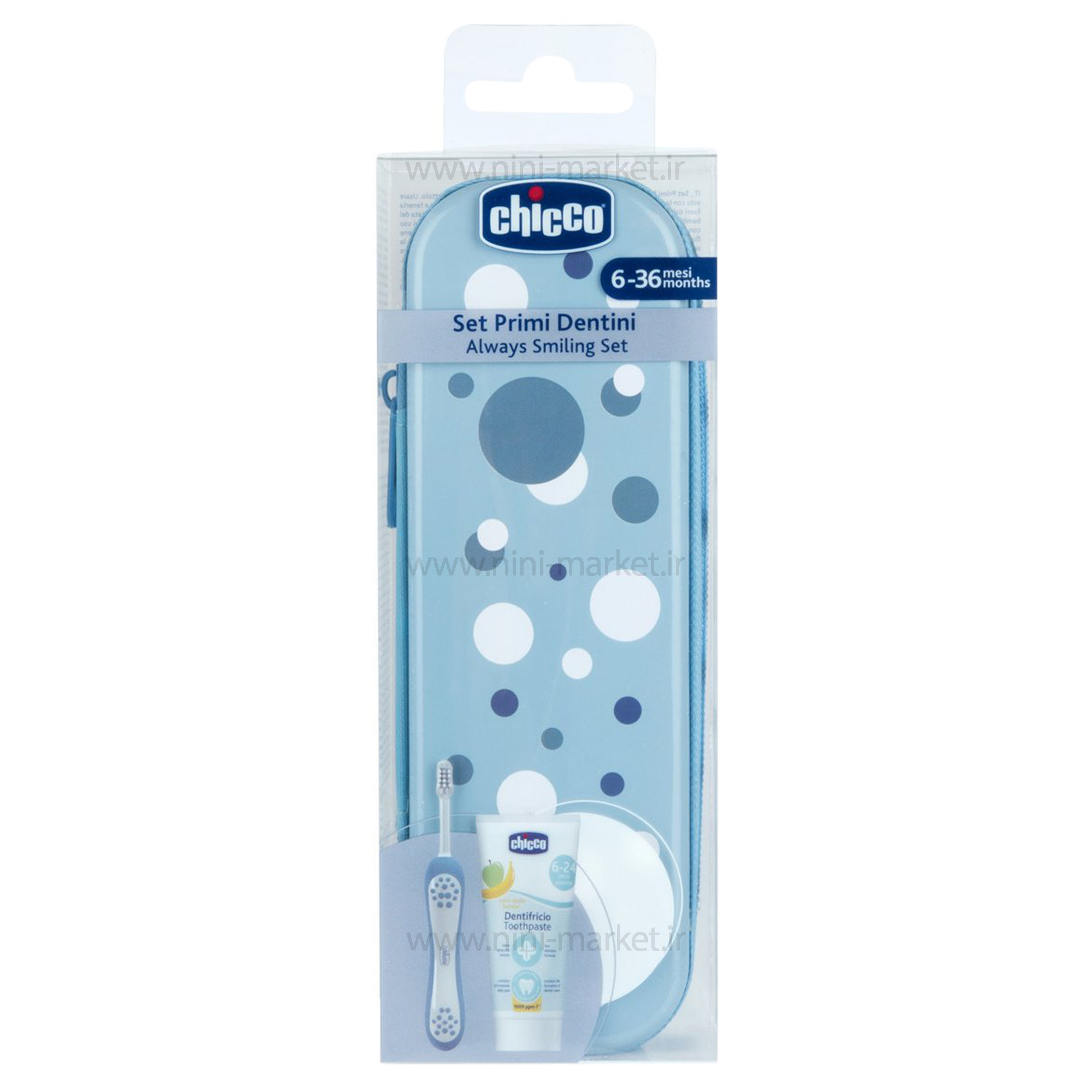Chicco toothbrush set 6-36 months polka dot design, blue color