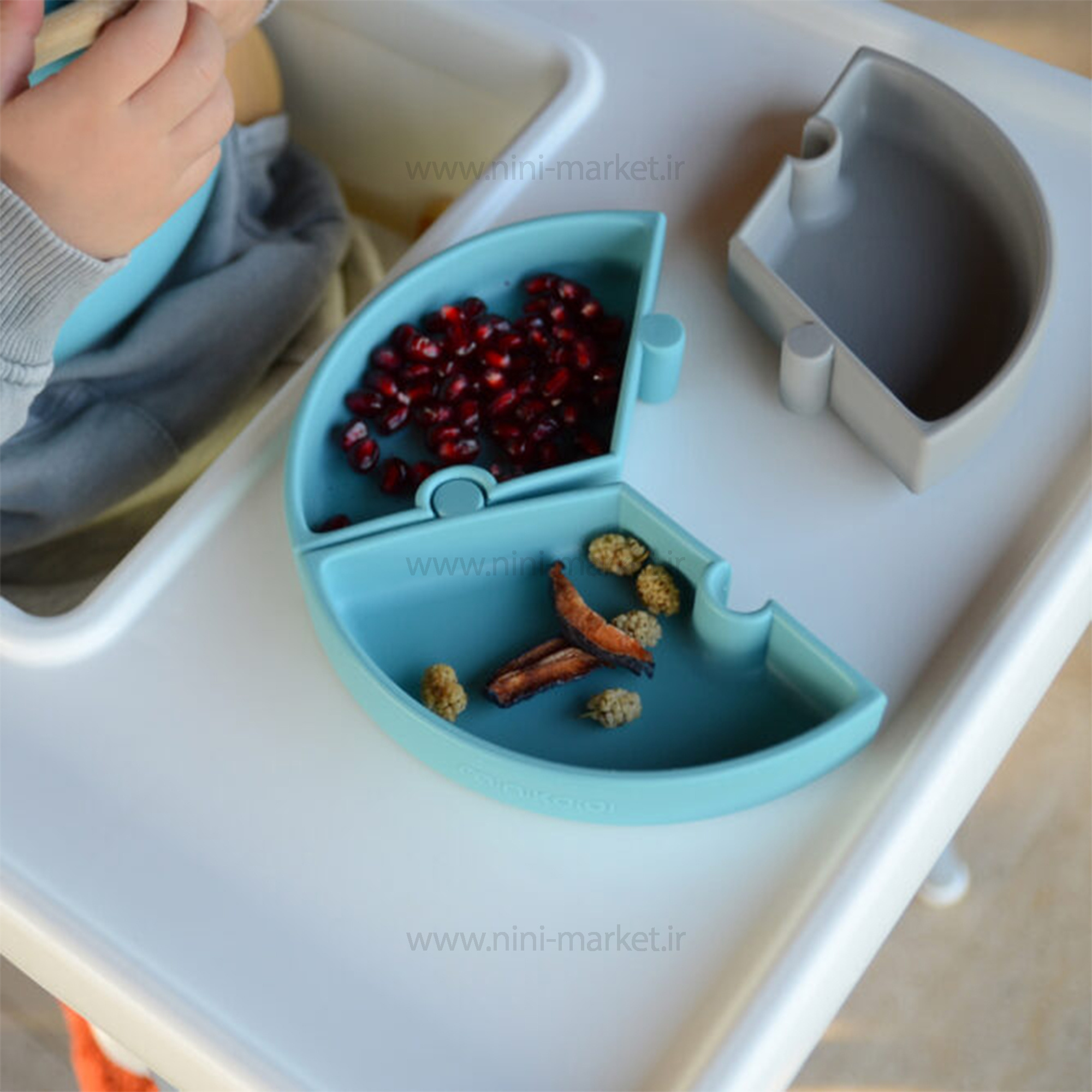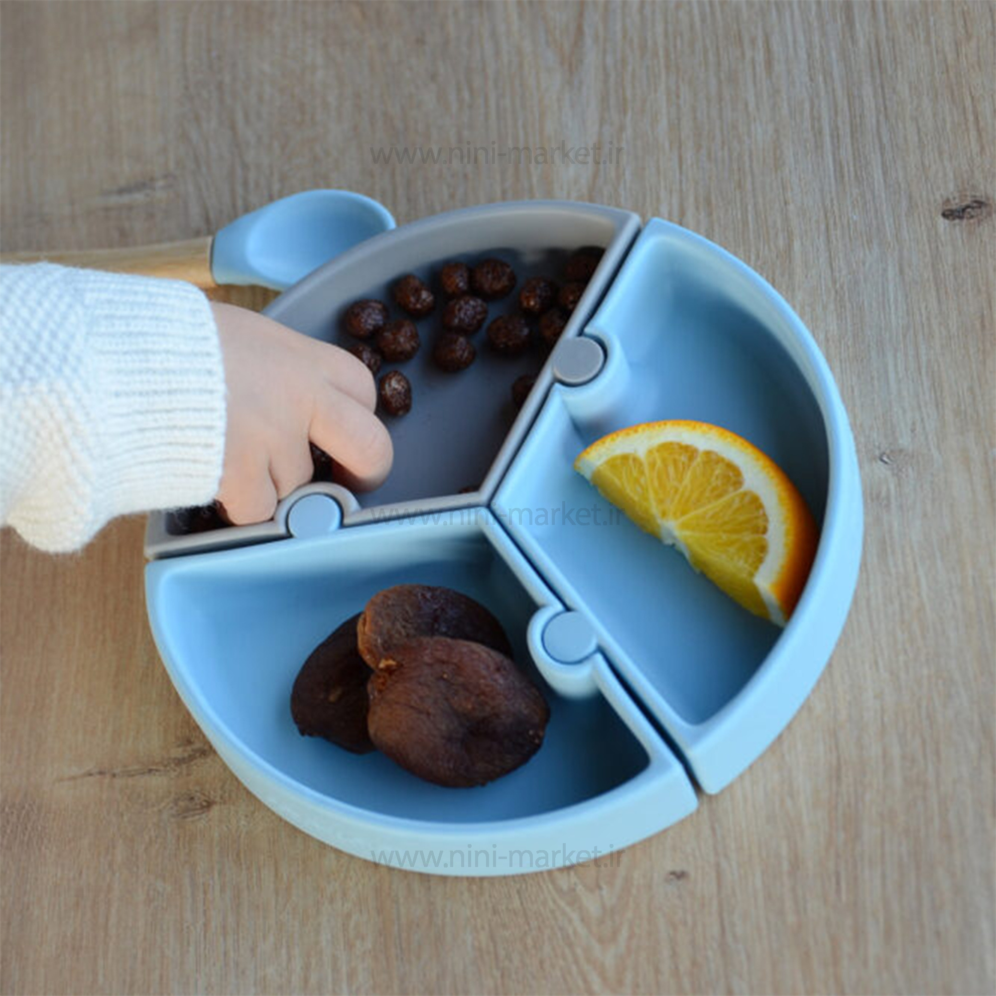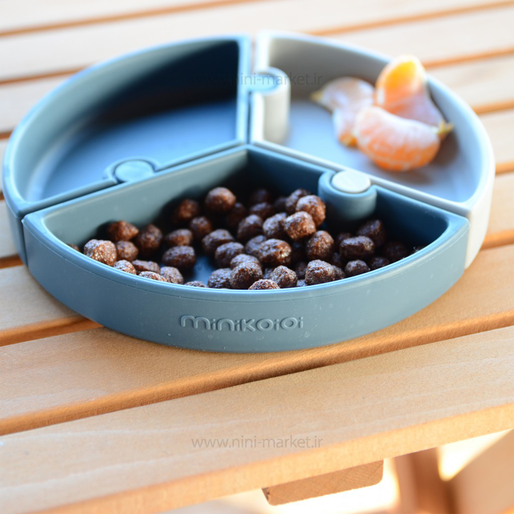 ظرف غذا پازلی چند بخش رنگ طوسی سبزآبی مینیک اوی اوی minik oi oi