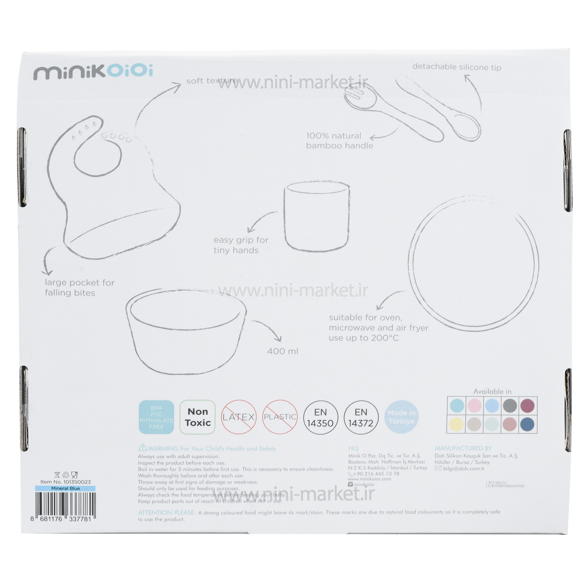 ست ظرف غذا 6 تیکه رنگ کرمی minik oioi شامل بشقاب، کاسه، پیشبند، لیوان، قاشق و چنگال است؛ ازاینرو، یک محصول کامل و جامع برای والدینی است که به دنبال یک ست کاربردی برای کودکشان هستند. محصولات ساخته شده توسط برند Minikoioi از سیلیکون مرغوب ساخته شده و فاقد BPA، لاتکس و فتالات است. این مجموعه کاملاً ضد حساسیت بوده و برای کودکان هیچگونه آسیب و خطری به همراه ندارد. رنگبندی بسیار متنوع در این برند، امکان انتخاب بهتر را برای شما فراهم میکند تا محصولات را با تنوع بالا، کاملاً بدون بو و مواد مضر تهیه کنید.این ست دارای کفی چسبی برای جلوگیری از افتادن ظرف می باشد
