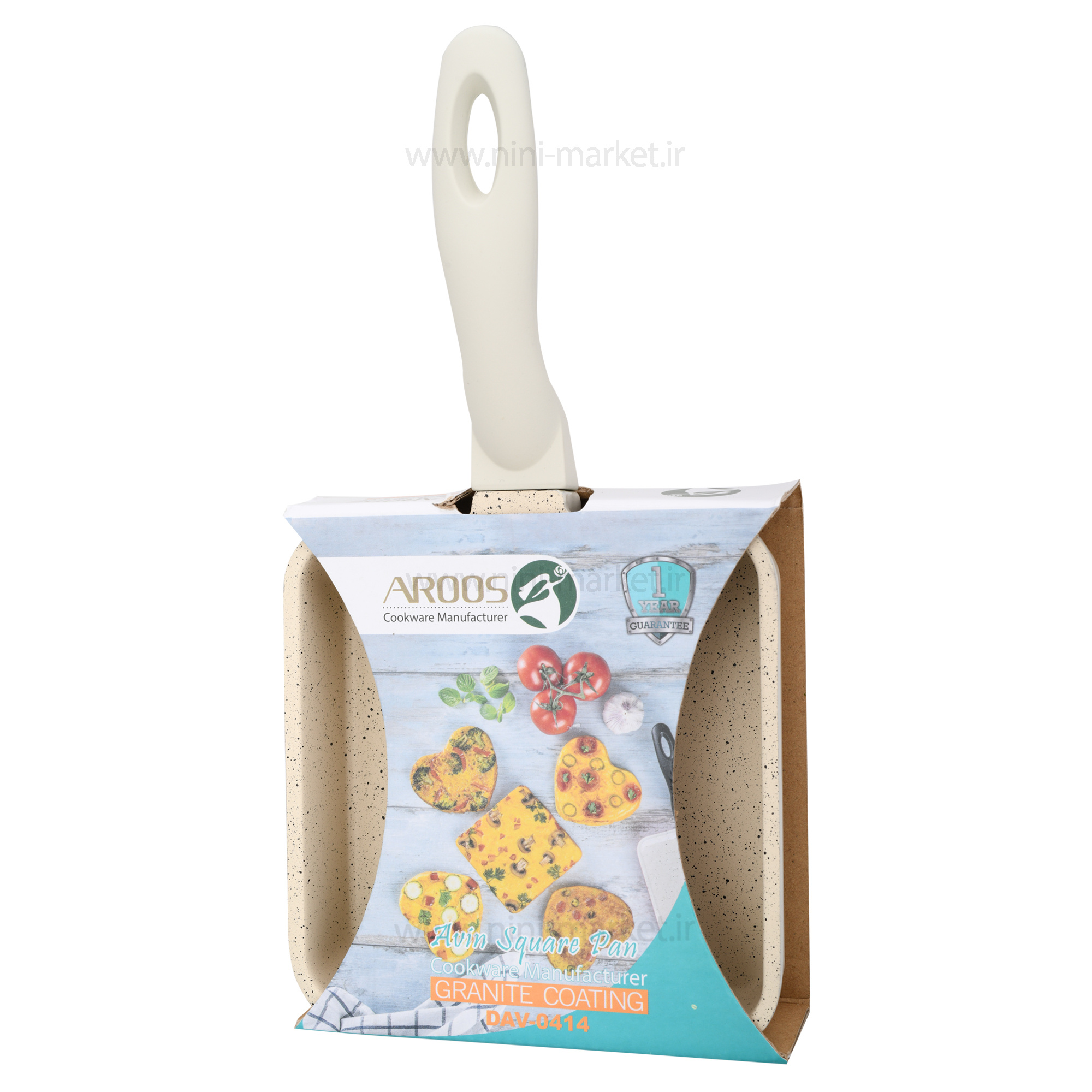 تابه چدن گرانیت مربع رنگ کرم عروس