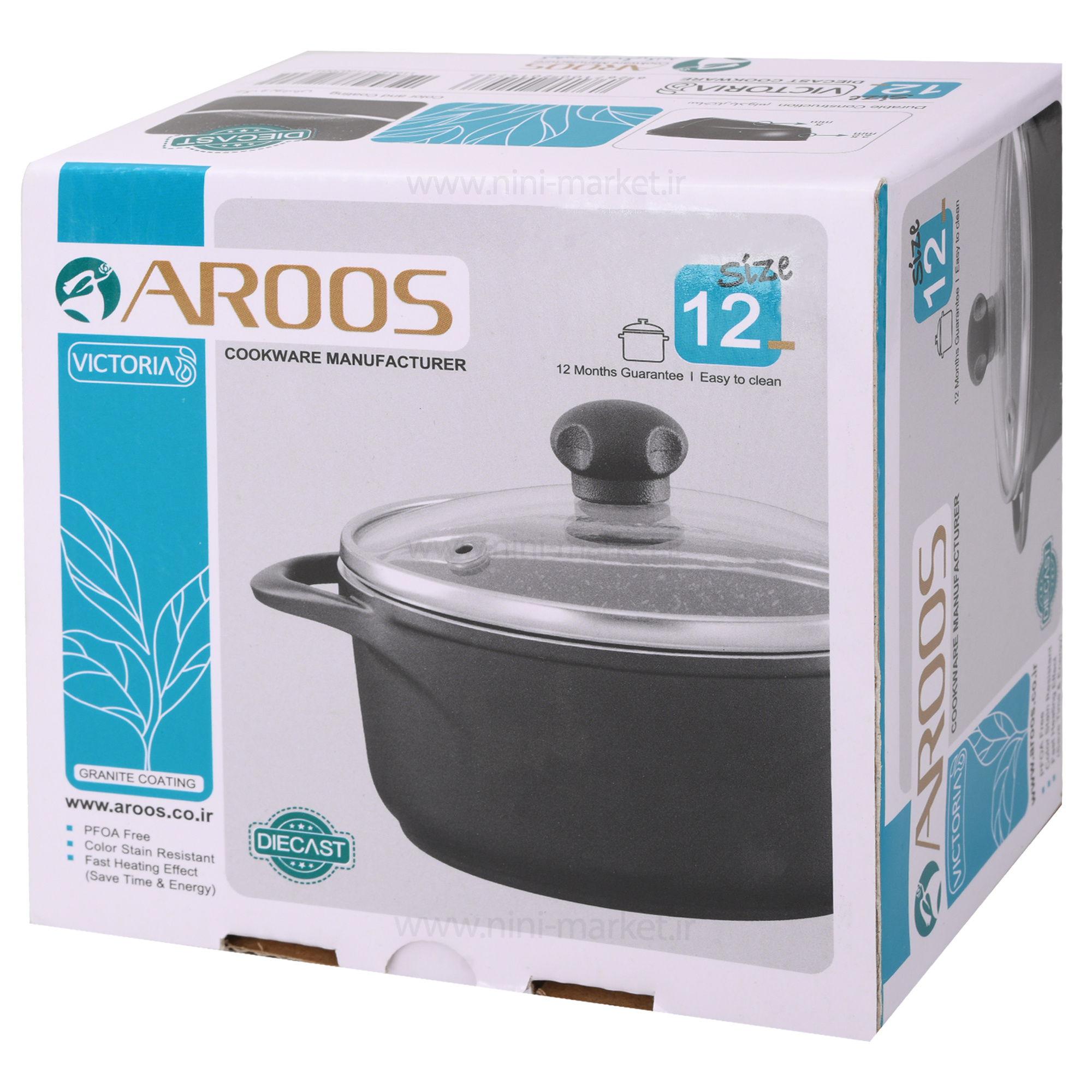 قابلمه تک سایز 12 مدل ویکتوریا رنگ مشکی عروس با جنسی مقاوم و باکیفیت میباشد که شما میتوانید بهراحتی مواد غذایی را در آن آماده کنید. این قابلمه تکسایز میباشد و همانطور که در بالا مشاهده میکنید روکش داخلی آن از گرانیت باکیفیت بالا است و بههیچعنوان مواد غذایی به آن نمیچسبد. این قابلمه گرانیتی عروس دارای دو عدد دسته از جنس آلومینیوم میباشد و جنس درب آن پیرکس است.