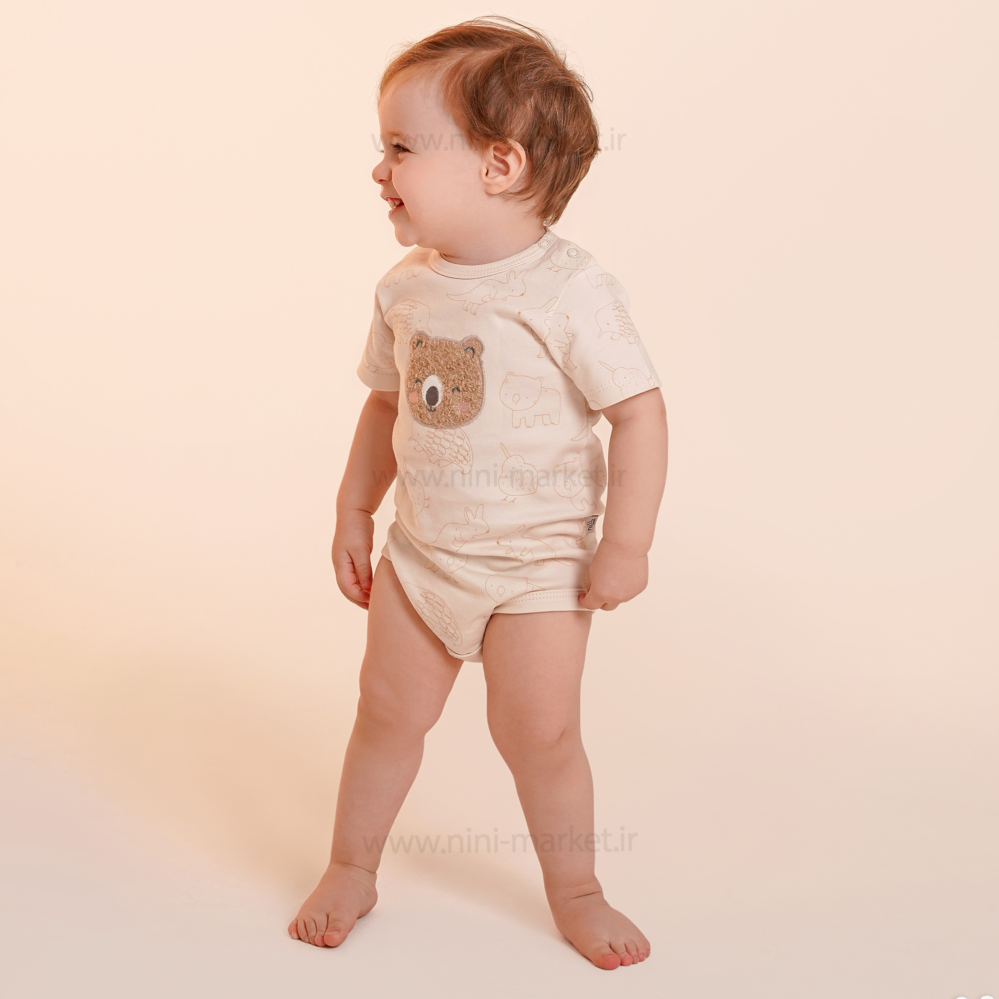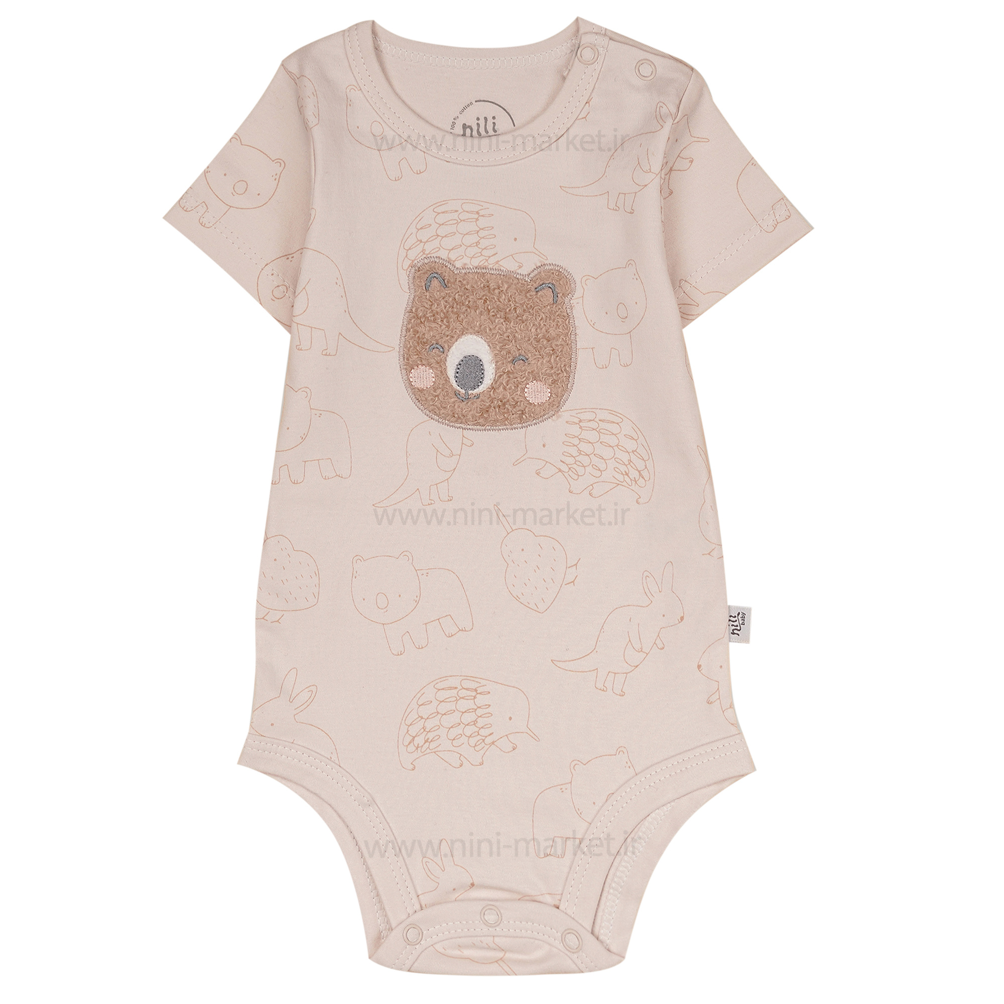 زیردکمه آستین کوتاه طرح کانگورو و دوستان رنگ کرم نیلی Nili