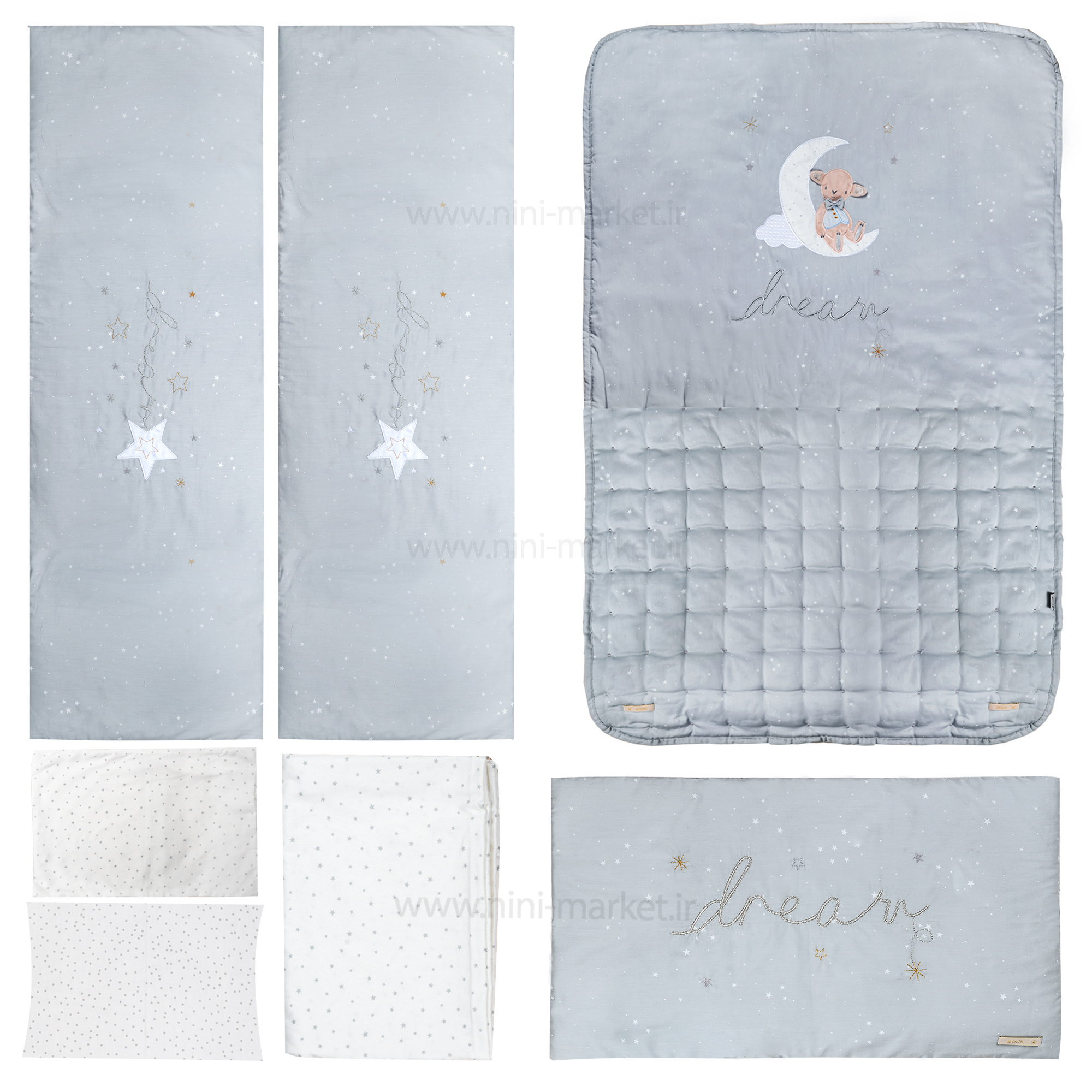 ست روتختی 7 تیکه طرح بوریس رنگ طوسی ایسیز یکی از محصولات ایس ایز میباشد که تولید مشترک ایران و ترکیه است. این محصول فاقد هرگونه عامل حساسیتزا و از بهترین و باکیفیتترین پارچه، الیاف و مواد اولیه بوده و در کشور ایران تولید میگردد. مهمترین نکته در خرید محصولات ایس ایز همانطور که قبلاً هم ذکر شد، کیفیت بالای تولید و ضد حساسیت بودن این محصولات میباشد که آرامش را برای فرزند شما به ارمغان خواهد آورد کودکان به دلیل داشتن پوستی حساس و آسیبپذیر و گاهی دارای آلرژی، نیازمند استفاده از سرویس خوابهایی هستند تا با پارچه و الیاف درجهیک و ضد حساسیت تولید شده باشند. نرمی، لطافت، ضد حساسیت بودن، شستشوی راحت، گوله نشدن از مهمترین خصوصیاتی که سرویس خواب کودک باید دارا باشد. روتختی ایس ایز نهتنها تمامی خصوصیات شمرده شده در بالا را دارا هستند، بلکه از تنوع رنگ و نقش نیز برخوردار بوده بهنحویکه میتواند نظر سختپسندان را نیز جلب نماید.