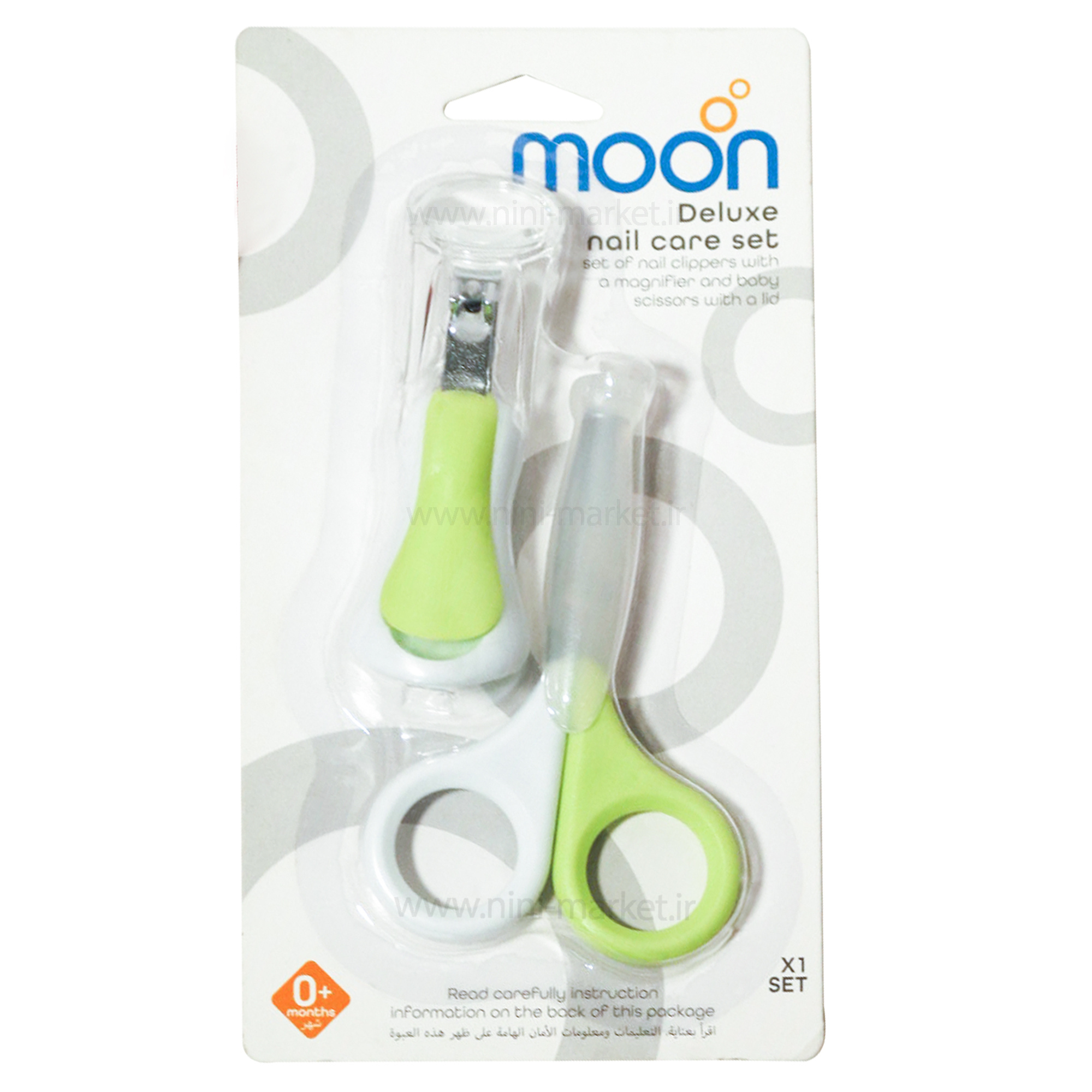 ست ناخنگیر ذرهبین دار و قیچی مون Moon یک ست کامل برای مراقبت از ناخنهای نوزاد می باشد ناخنهای کودک شما بلند میشوند و تبدیل به محیطی برای تجمع میکروب می شوند و یا حتی موجب زخمیشدن صورتش با همان ناخنهای بلند وجود دارد.در نتیجه رسیدگی به وضعیت ناخنهای کودک بسیار اهمیت دارد. اما دستان ظریف و ناخنهای بسیار کوچک نوزاد شما کار ناخنگیری را بسیار سخت خواهند کرد.