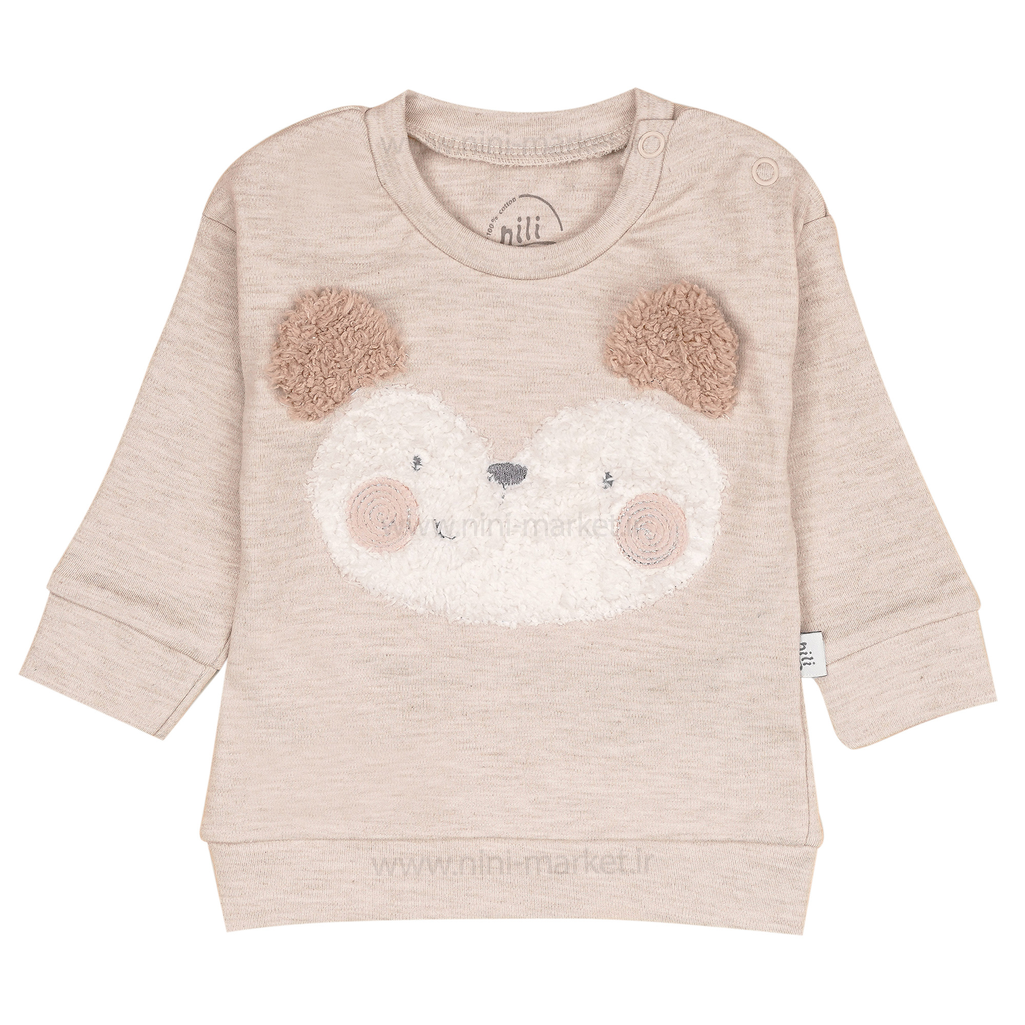 بلوز آستین بلند طرح فندق رنگ کرم ملانژ نیلی Nili