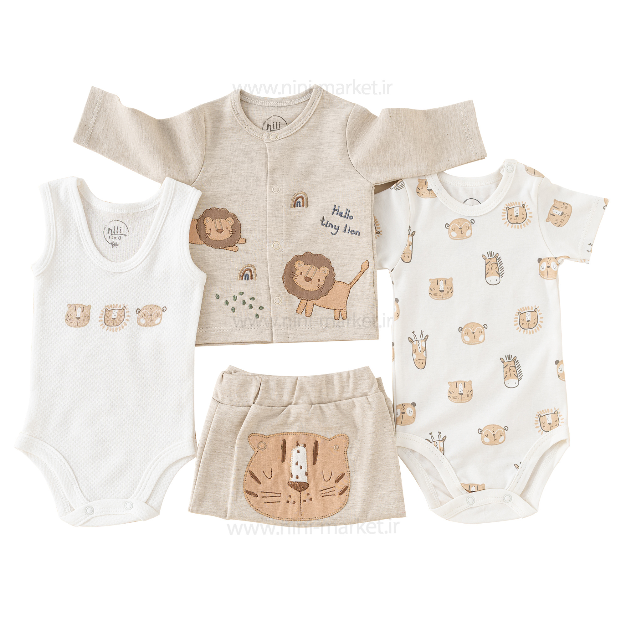 معرفی برند: برند نیلی مانند تمامی محصولات دیگرش، در این کار نیز از پارچه نخی دو رو پنبه و ضد حساسیت متناسب با پوست لطیف نوزاد استفاده کرده است. علاوه بر کیفیت بالای پارچه استفاده شده، طراحی خلاقانه و تنوع در سایزبندی، مجموعه نیلی را بهعنوان یک برند مطرح ایرانی معرفی کرده است بهطوریکه شما میتوانید با خیالی راحت لباس نوزاد دلبند خود را از این برند خریداری کرده و استفاده کنید.