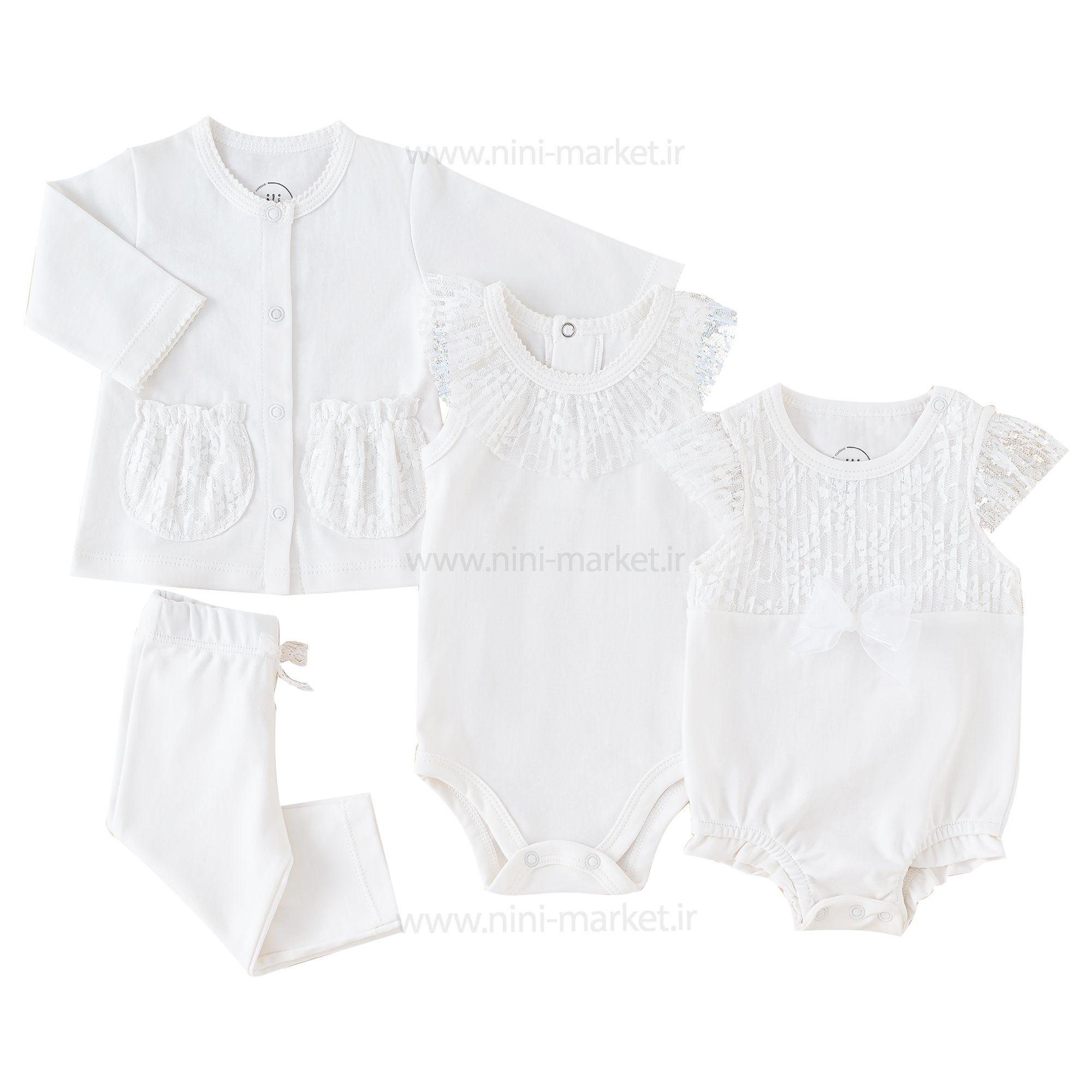معرفی برند: برند نیلی مانند تمامی محصولات دیگرش، در این کار نیز از پارچه نخی دو رو پنبه و ضد حساسیت متناسب با پوست لطیف نوزاد استفاده کرده است. علاوه بر کیفیت بالای پارچه استفاده شده، طراحی خلاقانه و تنوع در سایزبندی، مجموعه نیلی را بهعنوان یک برند مطرح ایرانی معرفی کرده است بهطوریکه شما میتوانید با خیالی راحت لباس نوزاد دلبند خود را از این برند خریداری کرده و استفاده کنید.