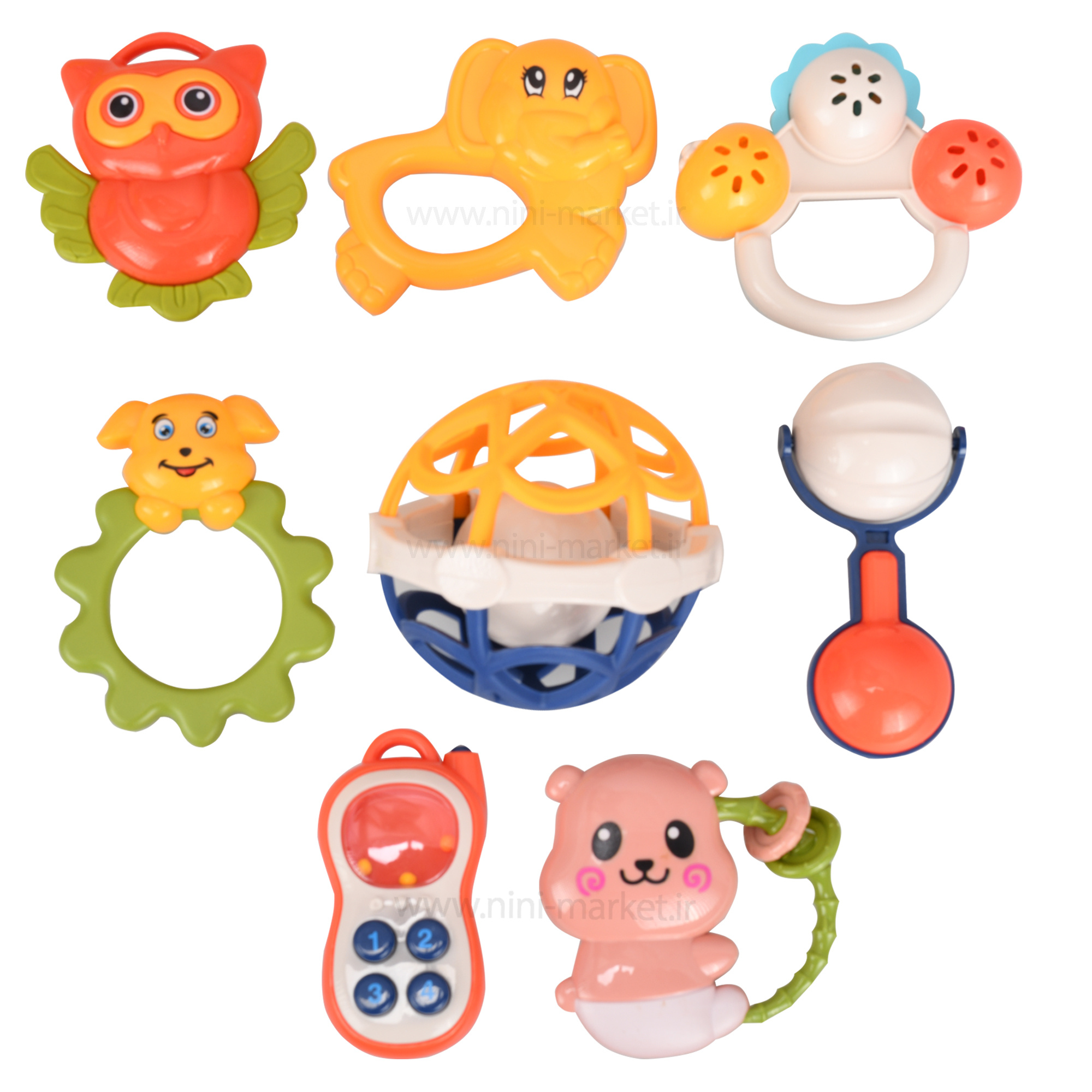پک جغجغه طرح تخممرغی دارای ۸ عدد جغجغه با طرحهای متنوع است.هر کدام از این جغجغهها دارای صدایی متفاوت نسبت به دیگری است. حالت مناسب برای به دستگرفتن نوزاد دارند. استفاده از رنگهای شاد و جذاب برای نوزاد از خصوصیات دیگر این جغجغهها محسوب میشود.