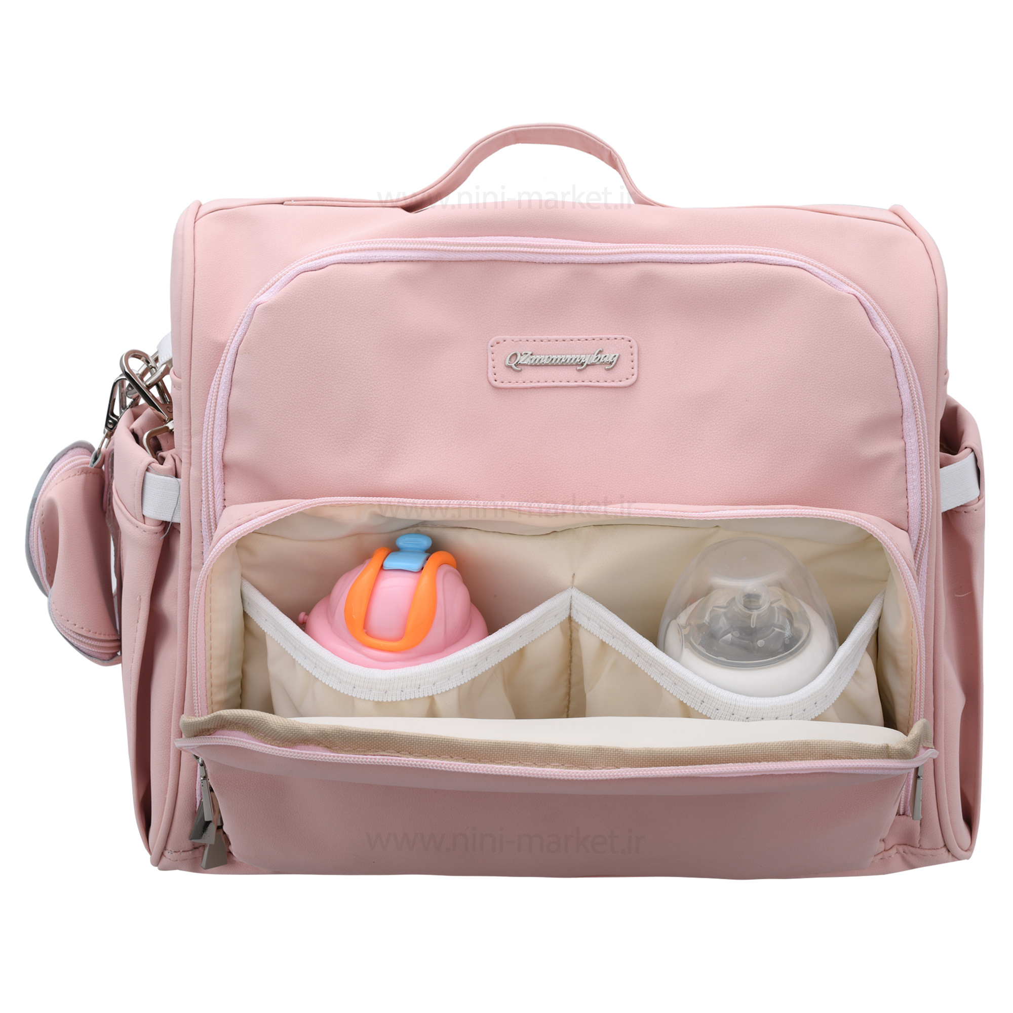 ساک لوازم کوله ای مدل اسپیشال خاویاری رنگ صورتی QZ با امکان استفاده به هر سه حالت دستی، رودوشی و کولهای را دارد. جیب اصلی این کولهپشتی لوازم نوزاد طرحدار از قسمت جلوباز میشود و دسترسی خوبی به وسایل داخلی به شما میدهد. شما میتوانید کیف بچه را به حالت چمدانی قرار داده و وسایل آن را مدیریت کنید. برای استفاده بهصورت کولهای، بندهای کولهپشتی در جیب قسمت پشتی قرار دارند. این بندها ظاهری زیبا و شکیل به کار داده و نیازی به همراه بردن این بندها بهصورت مجزا ندارید. قسمت داخلی ساک لوازم نوزاد دارای آستر ضد آب است و برای آسانی در جادادن لباسهای نمدار نوزاد این قابلیت به کار میآید. شستوشو ساک لوازم نوزاد هم بهصورت دستی و هم در ماشین لباسشویی امکانپذیر است. این کوله نوزادی دارای محفظه گرم نگهدارنده شیشه شیر، جیب مخصوص دستمال مرطوب، جیب مخصوص فلاسک، بند رودوشی و زیرانداز تعویض پوشک به ابعاد حدودی ۳۵*۴۵ است.همچنین برای راحتی در هنگام بیرون رفتن با کالسکه، بند آویز کالسکه در میان وسایل همراه قرار دارد. در ضمن این ساک لوازم به همراه یک عدد کولهپشتی نوزادی تقدیم شما میشود.