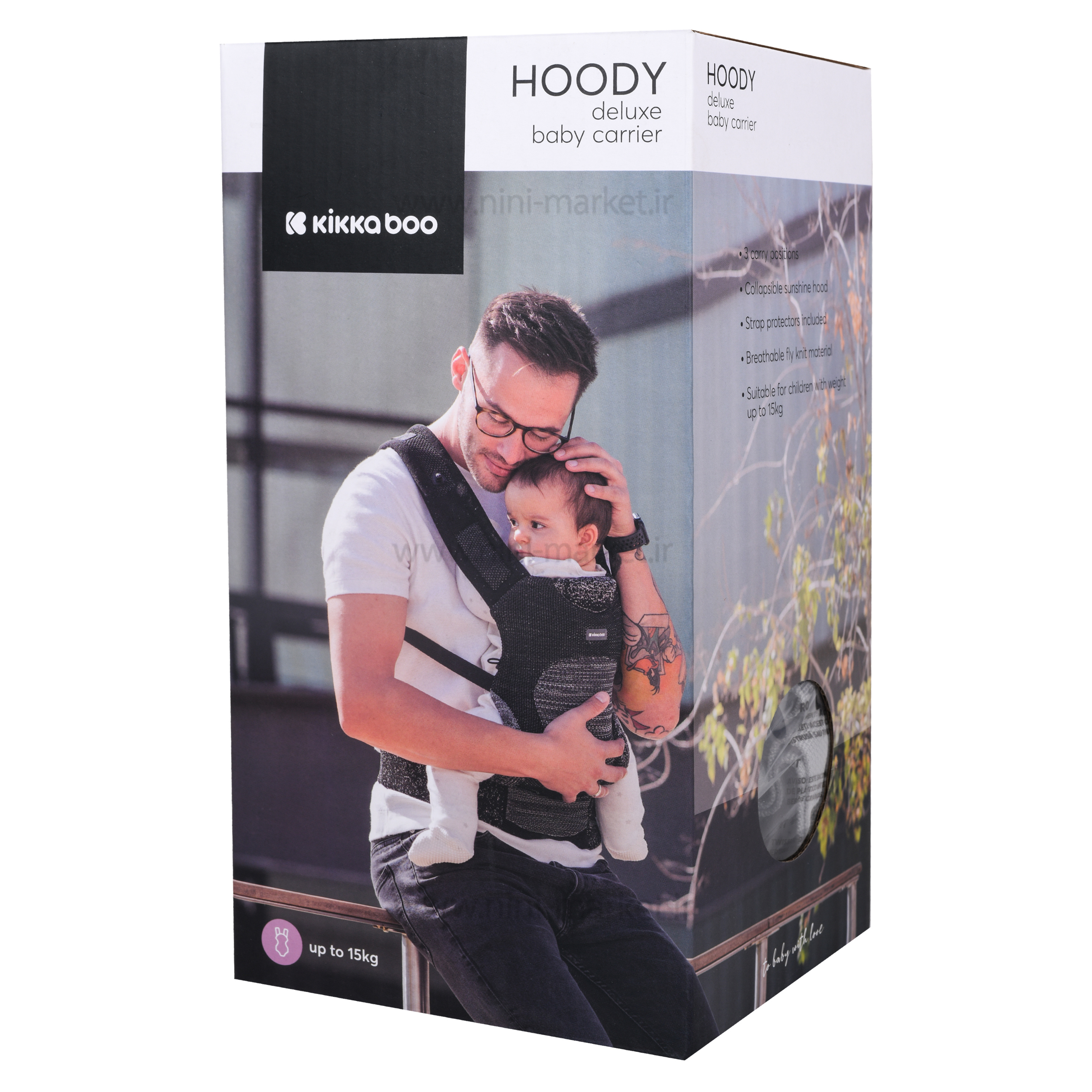 آغوشی کیکابو مدل Hoody، مناسب برای نوزادان از ۴ ماهگی تا حدود ۲۴ ماهگی است. تحمل وزن این محصول تا ۱۵ کیلوگرم بوده و با داشتن تسمههای شانهای نرم، استفاده را برای والدین آسان میکند. روکش آفتابگیر این محصول باعث میشود سر کودک در زیر آفتاب داغ نشود؛ همچنین در لزوم میتوانید این بخش را کار گذاشته و از آن استفاده نکنید. آغوشی مدل Hoody تهیه شده از پارچهٔ توری درجه یک، دارای قسمت مشبک برای تهویهٔ هوا است. جیب کوچک که در قسمت جلویی این محصول قرار داده شده، برای قراردادن وسایل کوچک بسیار کاربری است.
