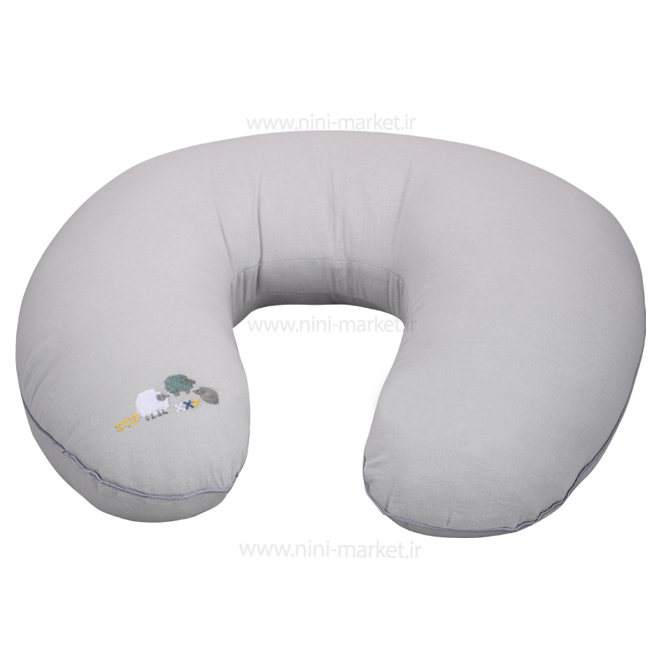 بالشت شیردهی c شکل طرح گوسفند موسلین رنگ طوسی isiz