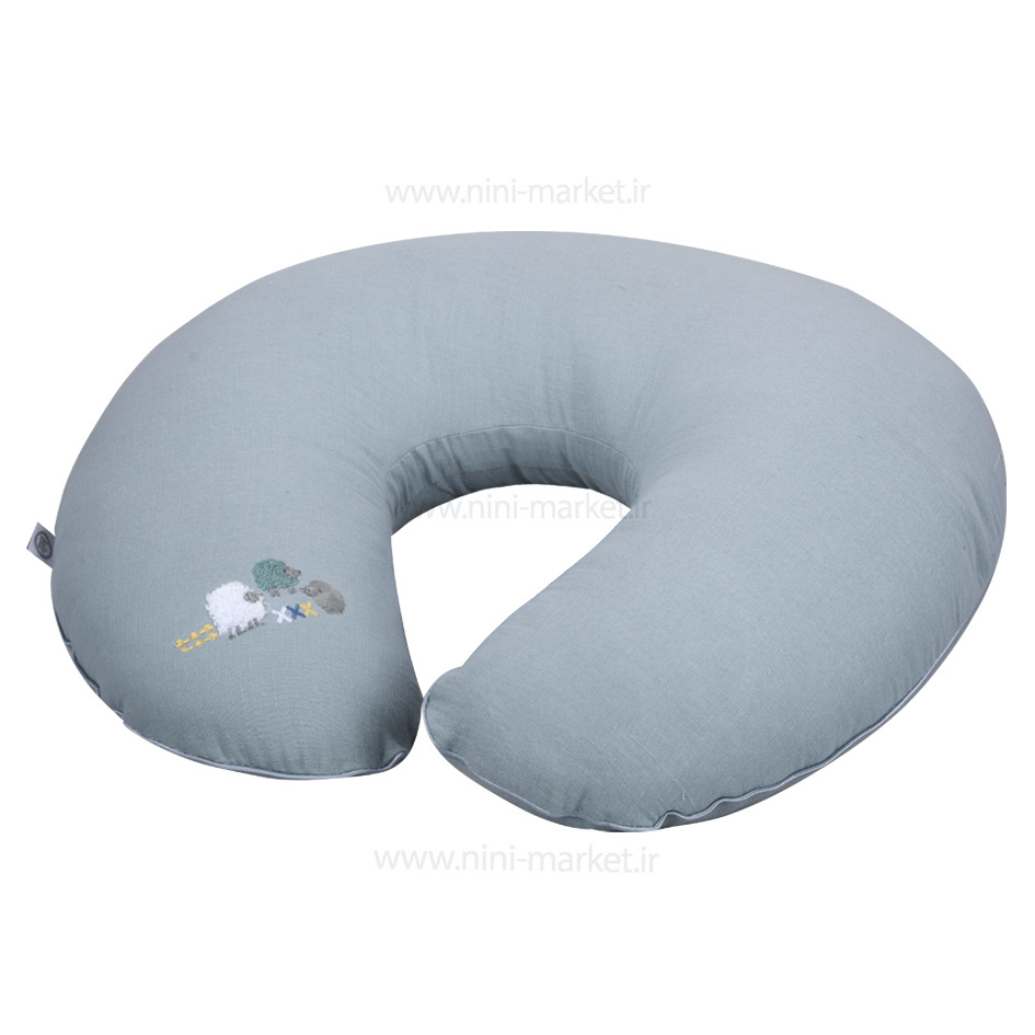 بالشت شیردهی c شکل طرح گوسفند موسلین رنگ کله غازی Isiz