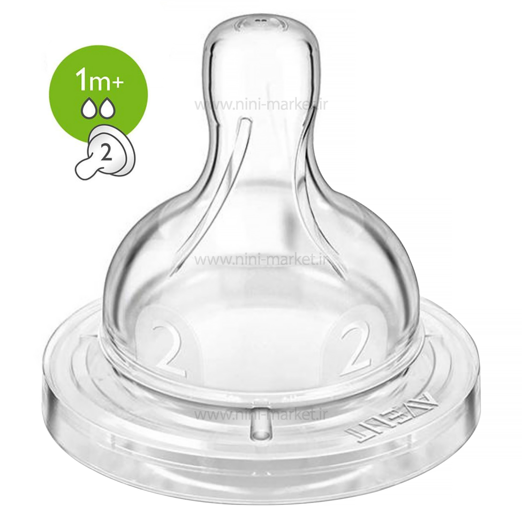 سر شیشه کلاسیک دو قطره ای Philips Avent Classic+ size 2 سر شیشه مناسب نوزادان تازه متولد شده است. سر شیشه کلاسیک پلاس اونت حاوی 2 سوراخ برای کنترل خروجی شیر برای نوزادان تازه متولد شده است تا شیر به مقدار قطره ای و با فشار کمتری به دهان نوزاد وارد شود. این مزیت باعث میشود تا با توجه به معده حساس نوزادان تازه متولد شده، هوای کمتری وارد معده کودکان شود و مشکل نفخ و کولیک برای نوزادان به وجود نیاید.