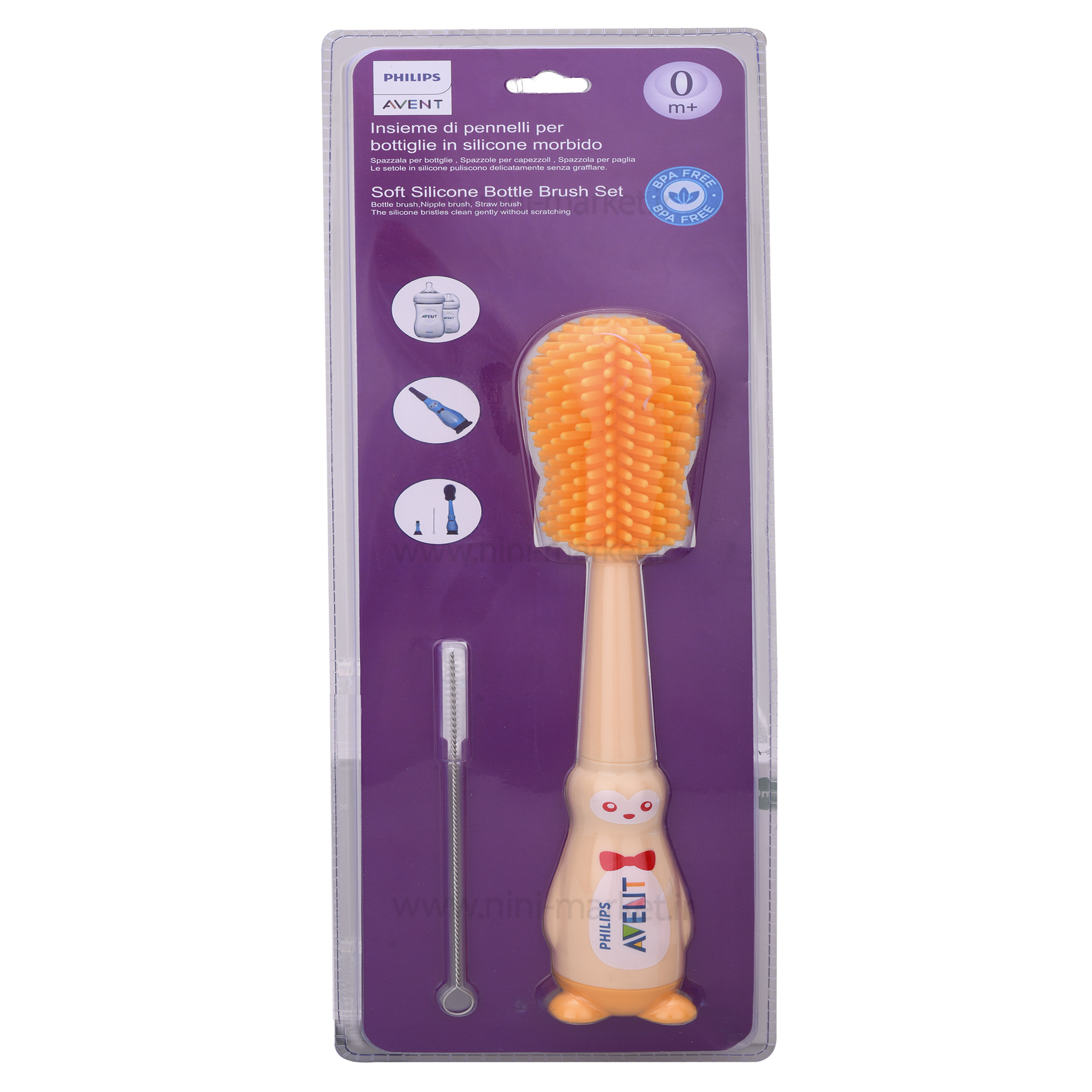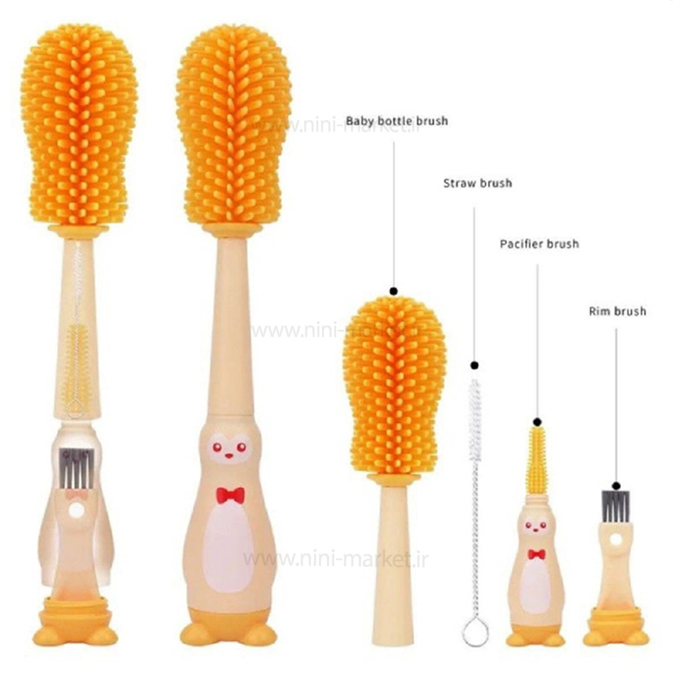 شيشه شور سيليکوني رنگ زرد اونت Avent،این برس شیشهشور از جنس سیلیکون نرم ساخته شده. این محصول علاوه بر اینکه قدرت تمیزکنندگی فراوانی دارد با آسیب نزدن به جدارههای شیشه شیر و جلوگیری از بروز خطوخش باعث افزایش طول عمر شیشه شیر کودک شما میشود. همچنین طراحی ارگونومیک این محصول باعث شده تا بتوانید برای تمامی شیشه شیرها از برندهای مختلف استفاده کنید. از جمله مزایا این شیشهشور داشتن برس شستوشوی سرشیشه و یک برس نازک برای شستن نی باریک شیشهها و یا لیوانهای آبمیوه خوری است که در داخل دسته شیشه شور اصلی قرار میگیرد.
