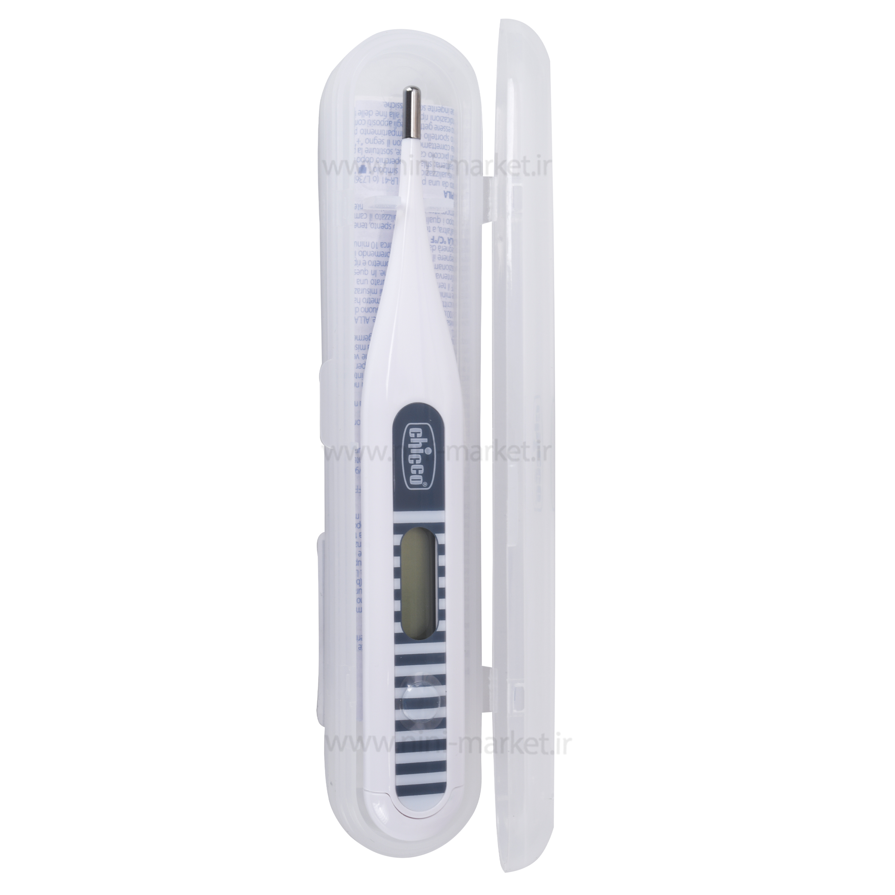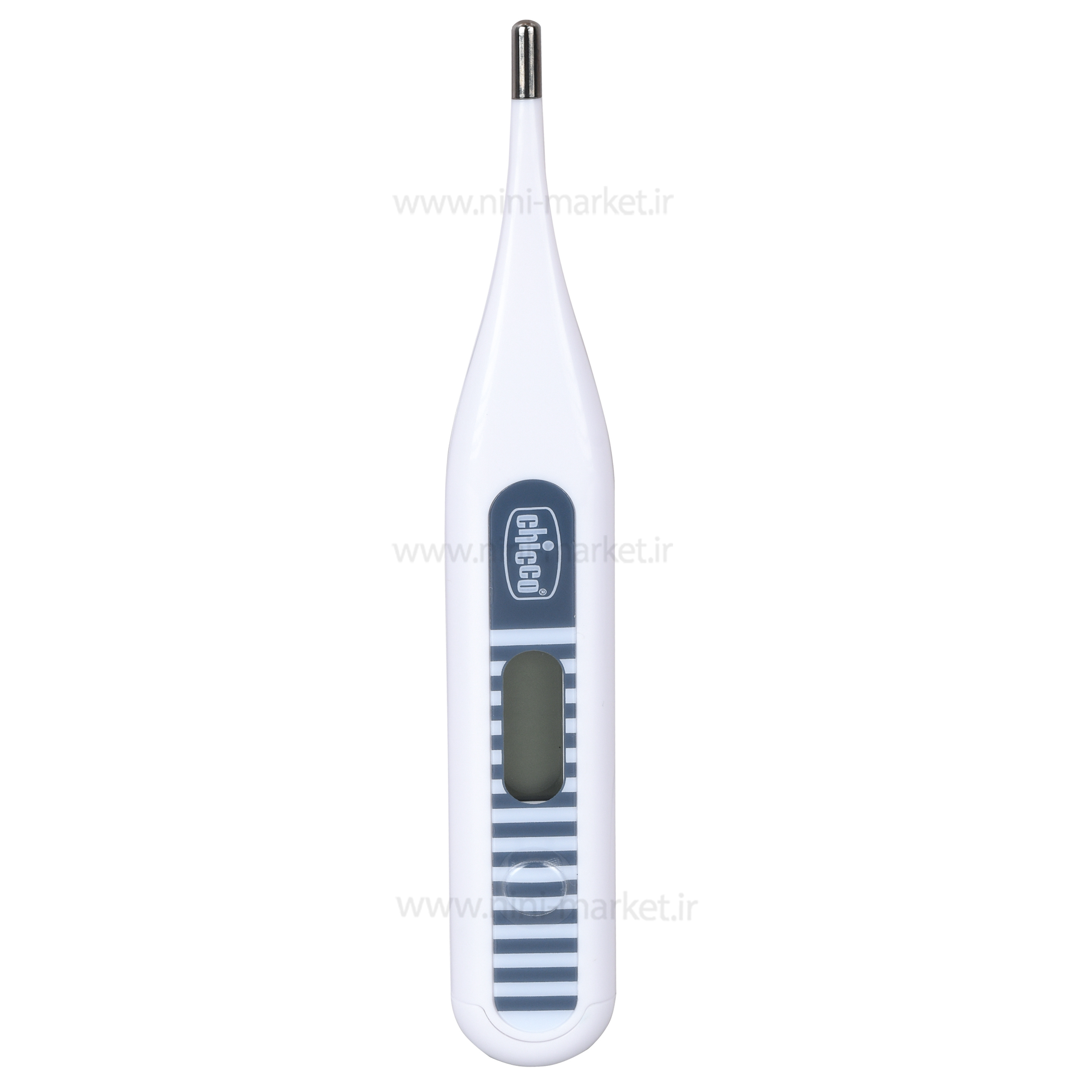 تب سنج مدادي رنگ طوسي راه راه Chicco، مناسب برای تعیین دمای بدن نوزاد و کودک. نوزاد به دلایل مختلفی دمای بدنش قابل‌تغییر خواهد بود، سرماخوردگی، واکسیناسیون و… از جمله عوامل بروز تب کودک هستند و بدیهی است که سنجش توسط دست مادر یا پدر در این مواقع کافی نیست؛ زیرا که بدن والدین هم می‌تواند تحت عوامل گوناگون دمای واقعی را نداشته و بالا یا پایین‌تر از معمول باشد، به همین علت استفاده از تب سنج چیکو که یک محصول کارآمد و مطمئن هست را پیشنهاد می‌دهیم. داشتن یک تب سنج از این نظر در منزل مهم می‌باشد که تب عامل هشداردهنده بدن انسان می‌باشد و دریافتن سریع درجه‌حرارت بدن کودک و اطلاع سریع به پزشک می‌تواند در خیلی از مواقع منجی حال کودک گردد. تب سنج کودک چیکو دارای یک هشدار صوتی است که پایان اندازه‌گیری را نشان می‌دهد. بعد از اندازه‌گیری، تب سنج به‌صورت خودکار خاموش می‌شود. تب سنج دیجیتالی Chicco بسیار سریع دمای بدن را در چند ثانیه مشخص می‌کند، بسته به سن کودک شما می‌توانید تشخیص دهید که از چه روشی اعم از مقعدی یا دهانی و… استفاده کنید تا نتیجه‌ای درست‌تر را به دست آورید. از طریق رکتوم و دهانی ۵ ثانیه و در زیربغل ۲۰ ثانیه طول می‌کشد تا دما را به‌صورت دقیق اندازه گرفته و پس از مشخص‌شدن نهایی، دماسنج چیکو بوق می‌زند و شما را آگاه می‌سازد.