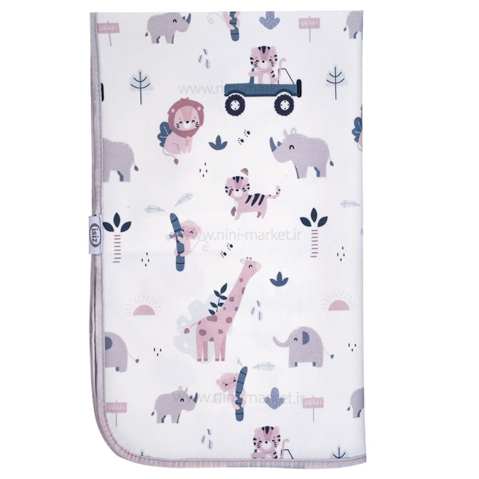 زیرانداز تعویض طرح حیوانات رنگ طوسی ایسیز جنس رویه از پارچه نرم و لطیف میباشد و لایه زیرین از جنس مشمایی و ضد نم میباشد. این زیرانداز مناسب برای تعویض نوزاد یا زمانهایی که پوشک ندارد. زیرانداز تعویض قابل شستشو با دست میباشد و در طرحهای زیبا و جذاب کارتونی و حیوانات تولید شده است همچنین دارای دوختی زیبا و مرتبی دارد و استفاده از آن ساده میباشد و بهراحتی داخل کیف مادر قرار میگیرد.
