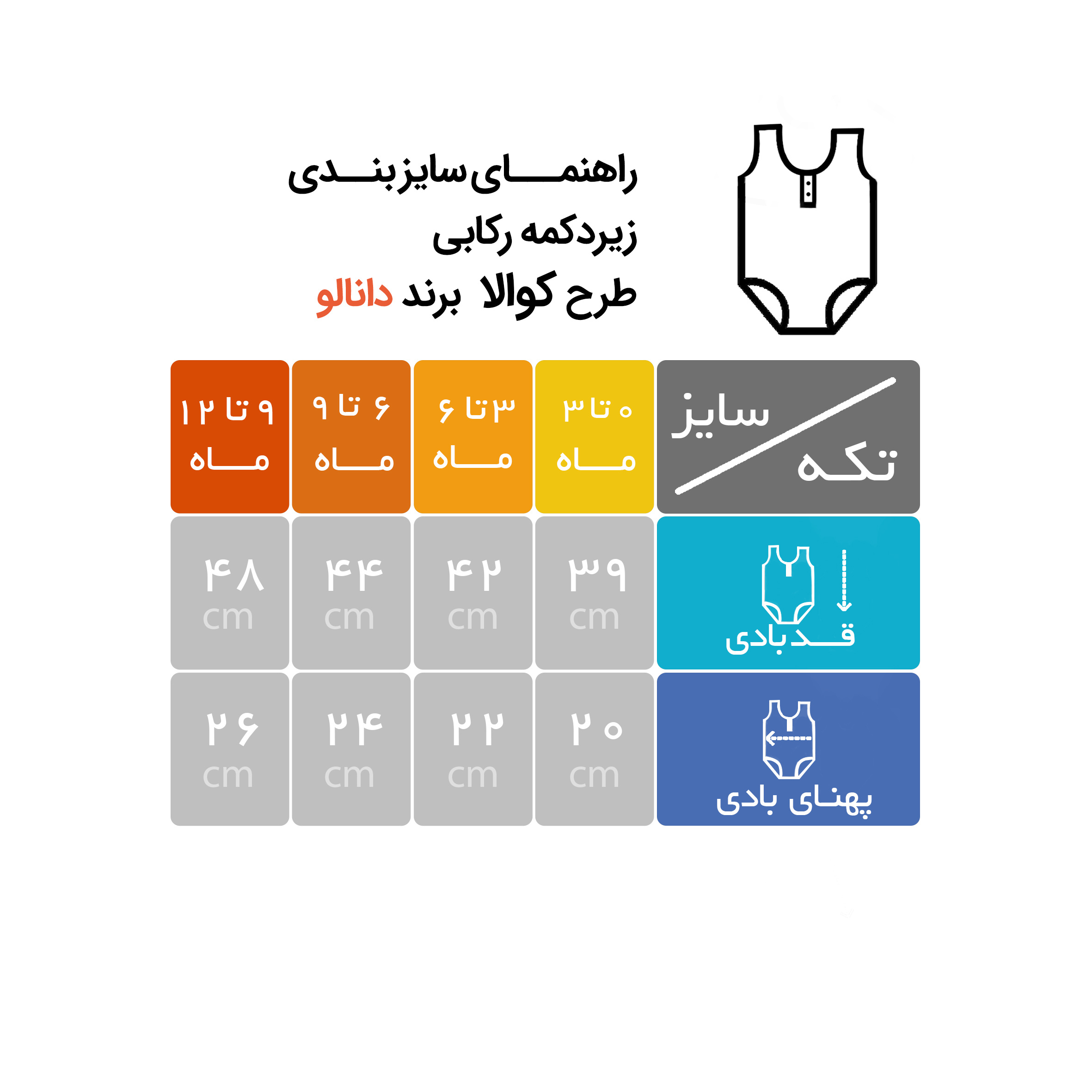 این مجموعه از برند دانالو دارای لباسهای چند تکه میباشد که جنس آنها از سوپر نخ بوده و در دوختن این لباسها از الیافهای طبیعی، رنگ ثابت و بسیار مرغوب استفاده شده است. زیر دکمه رکابی طرح کوالا دانالو با طراحی زیبا و دوختی ظریف گزینه مناسبی برای فرزند دلبند شماست. روی سینه این لباس طرح یک کولای بهصورت تکدوزی و گلدوزی درآمد است. سه دکمه زیر لباس تعبیه شده است که استفاده از آن را برای مادران آسان کرده است.