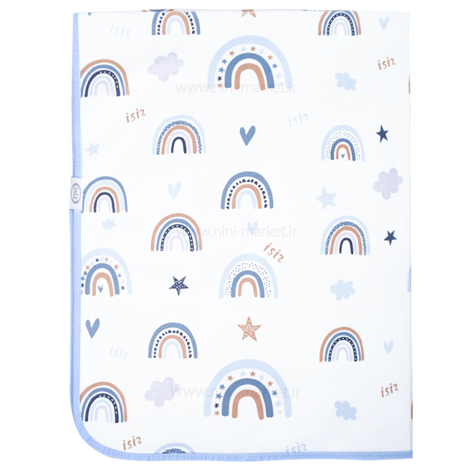 زیرانداز تعویض طرح رنگین کمان رنگ آبی سایز بزرگ ایسیزجنس رویه از پارچه نرم و لطیف می باشدو لایه زیرین از جنس پلاستیکی و ضد نم می باشد.این زیرانداز مناسب برای تعویض نوزاد یا زمان هایی که پوشک ندارد.زیرانداز تعویض قابل شستشو یا دست می باشد و در طرح های زیبا و جذاب کارتونی وحیوانات تولید شده است همچنین  دارای دوختی زیبا و مرتبی دارد و استفاده از آن ساده می باشد و به راحتی داخل کیف مادر قرار میگبرد.