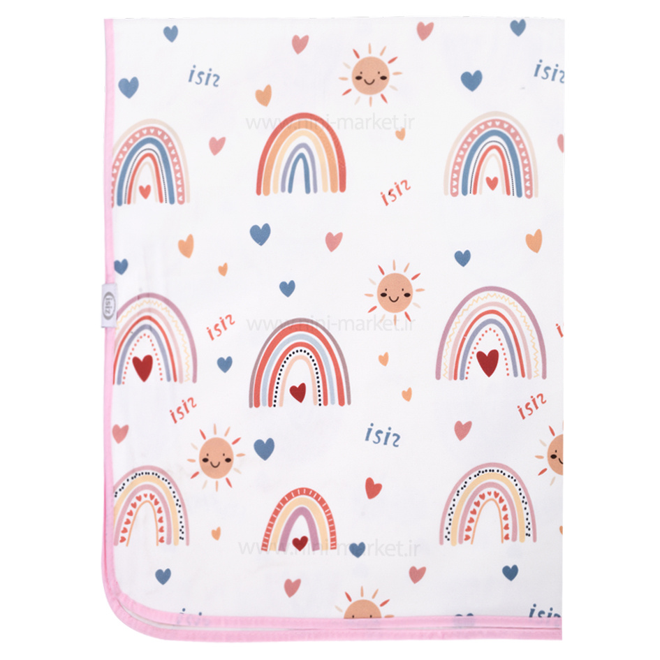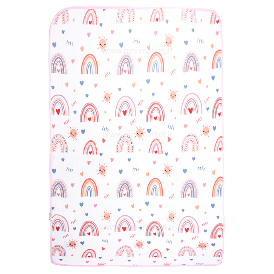 زیرانداز تعویض طرح رنگین کمان رنگ صورتی سایز بزرگ ایسیز جنس رویه از پارچه نرم و لطیف می باشدو لایه زیرین از جنس مشمایی و ضد نم می باشد.این زیرانداز مناسب برای تعویض نوزاد یا زمان هایی که پوشک ندارد.زیرانداز تعویض قابل شستشو یا دست می باشد و در طرح های زیبا و جذاب کارتونی وحیوانات تولید شده است همچنین  دارای دوختی زیبا و مرتبی دارد و استفاده از آن ساده می باشد و به راحتی داخل کیف مادر قرار میگیرد.