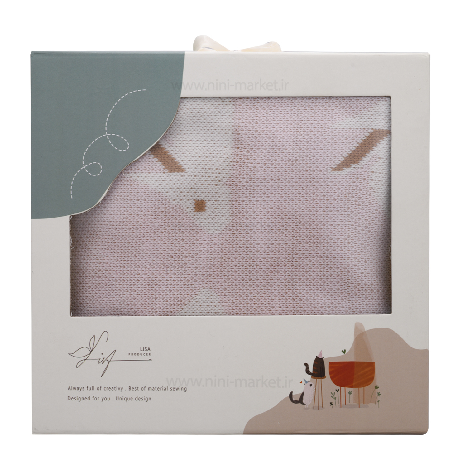 پتو بافت کلاه دار طرح خرگوش رنگ صورتی لیزا lisa