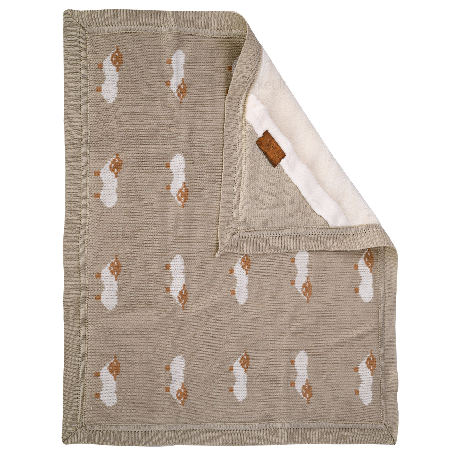 Liza cream-colored machine-drawn knitted blanket with a hood