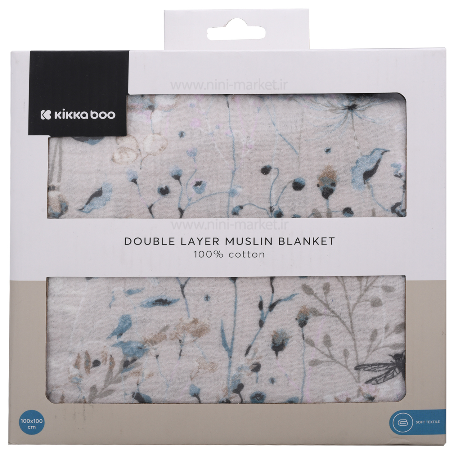 Double-layer cotton wrap, flower design, size 100*100, gray color, Kickaboo