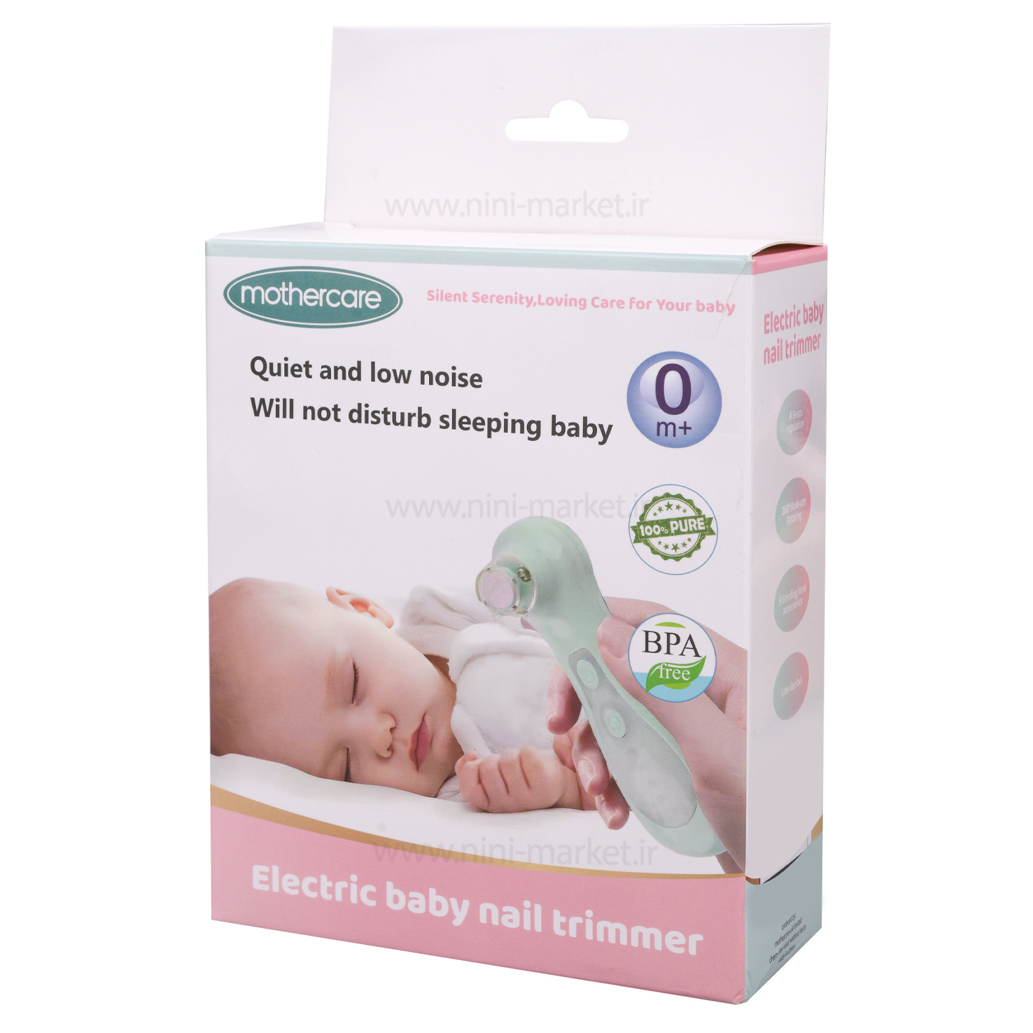 سوهان برقی Mothercare محصولی کاربردی و چندمنظوره است که از بدو تولد تا بزرگسالی قابلاستفاده میباشد. این دستگاه با طراحی شارژی و مجهز به ۹ سری مختلف، نیازهای مراقبتی ناخن در سنین گوناگون را پوشش میدهد. برای نوزادان، سه سری مجزا برای سنین ۰ تا ۳ ماه، ۳ تا ۶ ماه و ۶ تا ۱۲ ماه در نظر گرفته شده است. همچنین سه سری مخصوص برای کودکان یک سال به بالا، دو سری برای بالای ۳ سال و یک سری ویژه بزرگسالان ارائه میشود. این سوهان برقی با چراغ LED و صدای بسیار کم طراحی شده تا حتی در تاریکی و هنگام خواب کودک نیز بدون ایجاد مزاحمت قابلاستفاده باشد. سرعت چرخش آن در چهار درجه مختلف قابلتنظیم است و همراه با کابل شارژ عرضه میشود که قابلیت اتصال به پاوربانک، لپتاپ یا سایر دستگاهها را دارد. مدتزمان شارژ کامل دستگاه تنها ۶۰ دقیقه است و پس از آن میتواند بین ۶ تا ۸ ساعت به طور مداوم کار کند. وجود درپوش محافظ برای سریها مانع آلودگی میشود و کیف پارچهای همراه محصول، حمل و نگهداری آن را آسان میسازد. این محصول کاملاً فاقد BPA بوده و گزینهای ایده ال برای هدیه سیسمونی دخترانه یا پسرانه محسوب میشود.