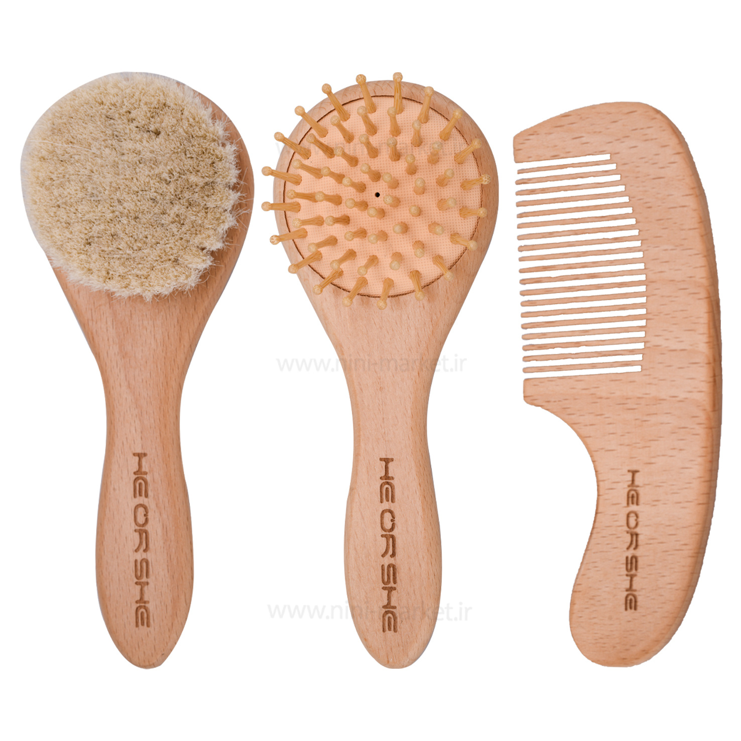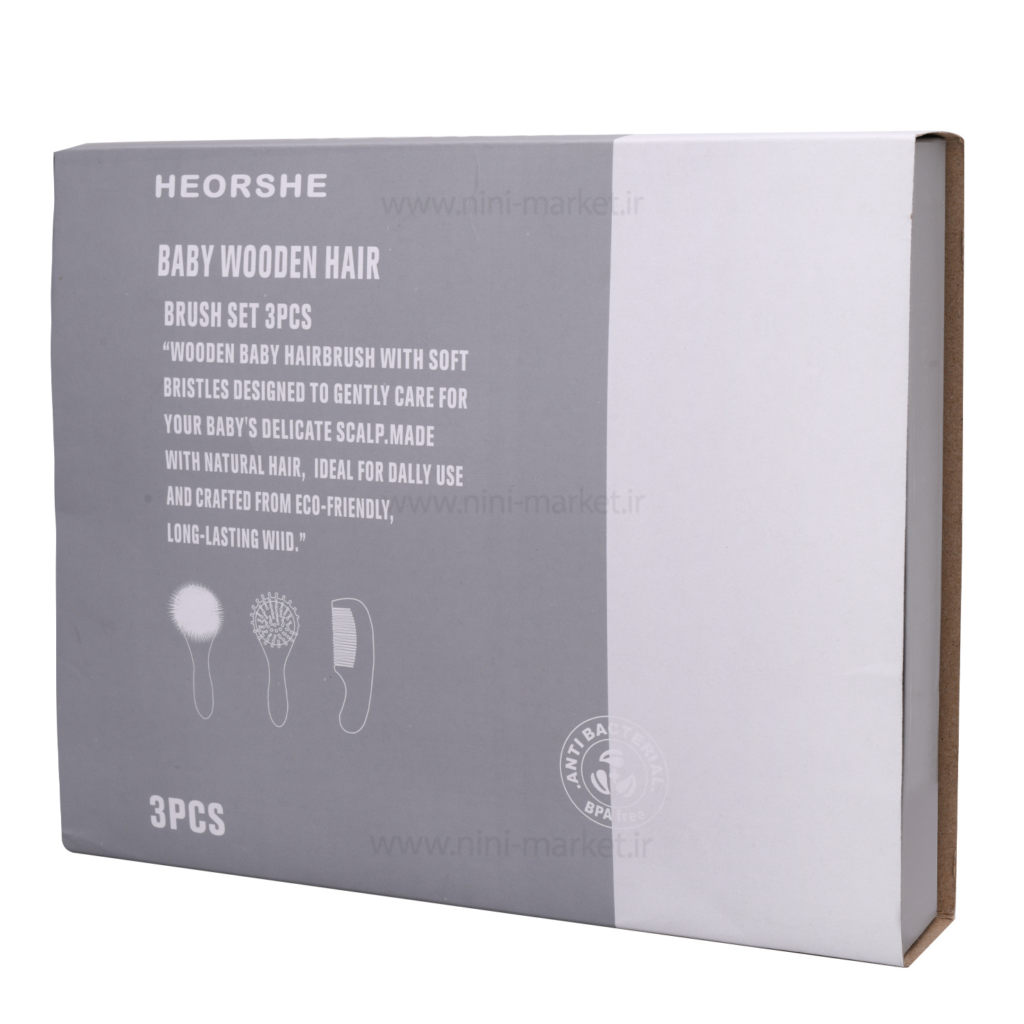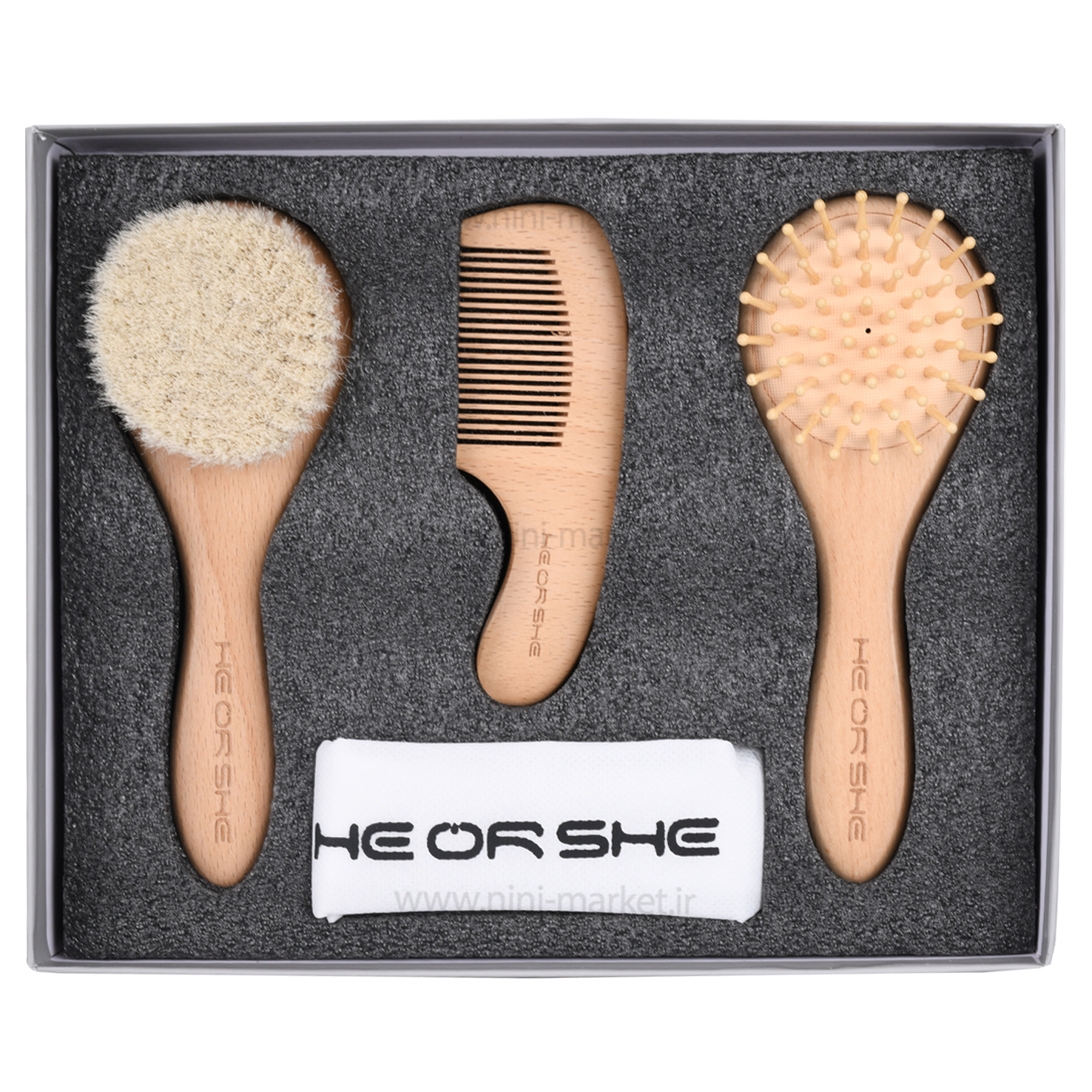 شانه و برس چوبی رنگ جعبه طوسی هی اور شی heorshe