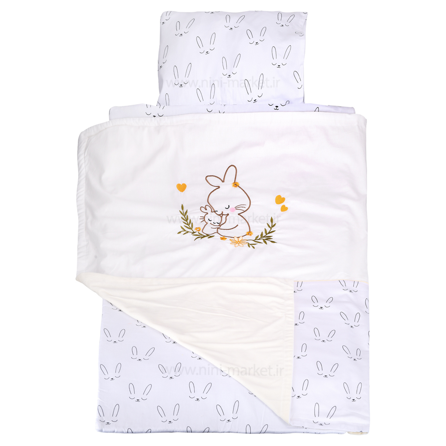 سرویس خواب مسافرتی2 کاره طرح خرگوش رنگ سفید ایسیز isiz
