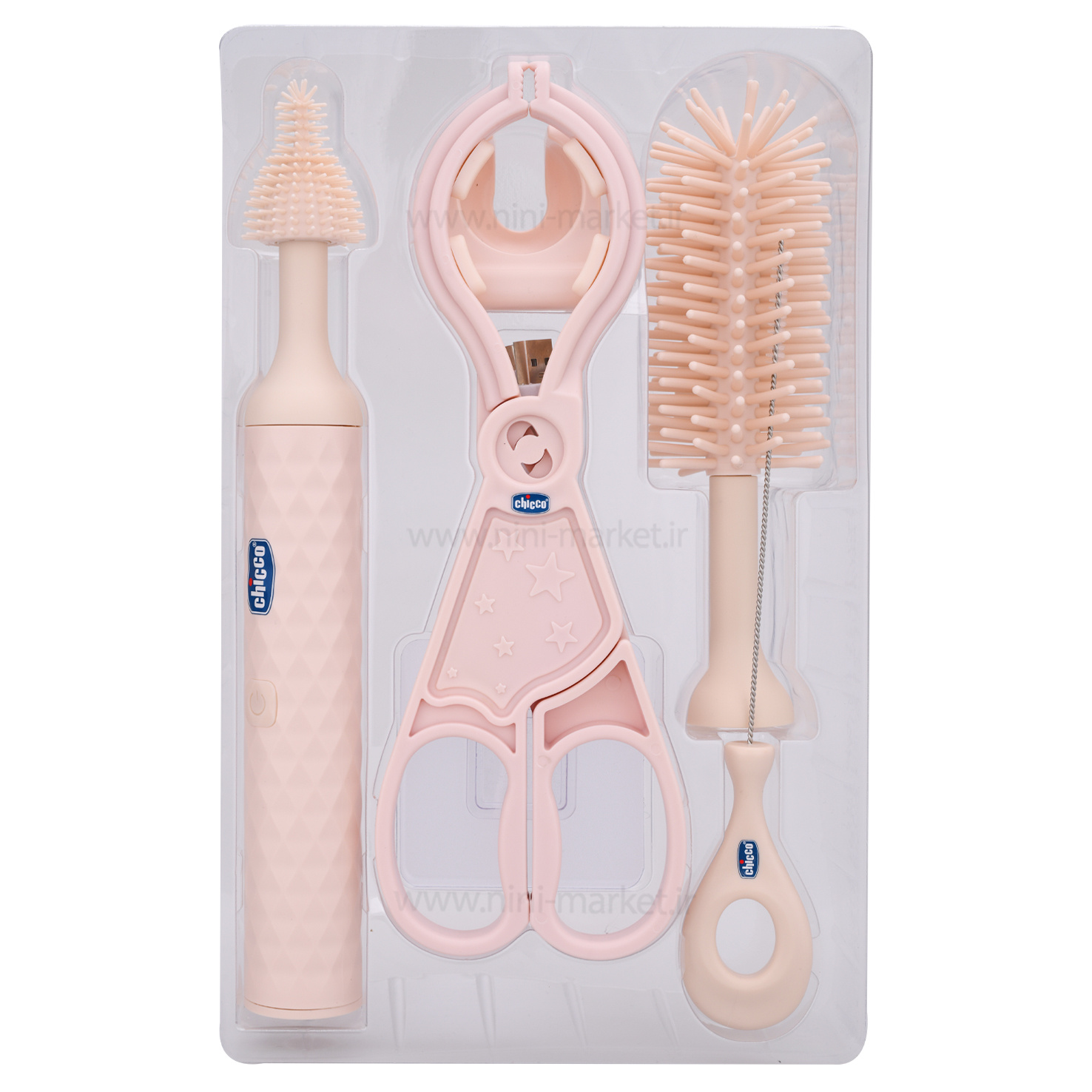 یک سری برس شیشه شوری برای همه قسمت‌های شیشه شیر است.یک  سری برس کوچکی برای شستشوی سرشیشه است.همراه محصول ابزاری برای نگه داشته شیشه شیر نیز ارائه می شود.یک عدد نی شور همراه این ست است که برای تمیز کردن انواع نی قابل استفاده است.برای استفاده کافی است هر کدام را که نیاز است به دسته محصول وصل کنید.با فشار یک دکمه برس به صورت 360 درجه شروع به چرخیدن و نظافت شیشه شیر می کند.همراه محصول ابزاری برای نگه داشته شیشه شیر نیز ارائه می شود.با کمک آن عمل شست و شوی شیشه بسیار آسان می شود. در این شرایط برس شیشه‌شور وسیله‌ای سودمند است.