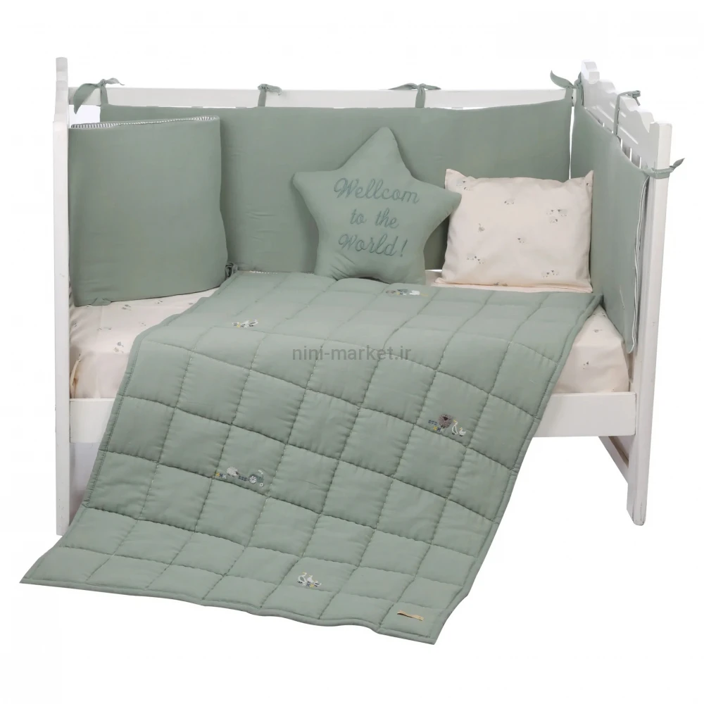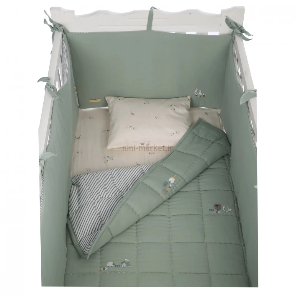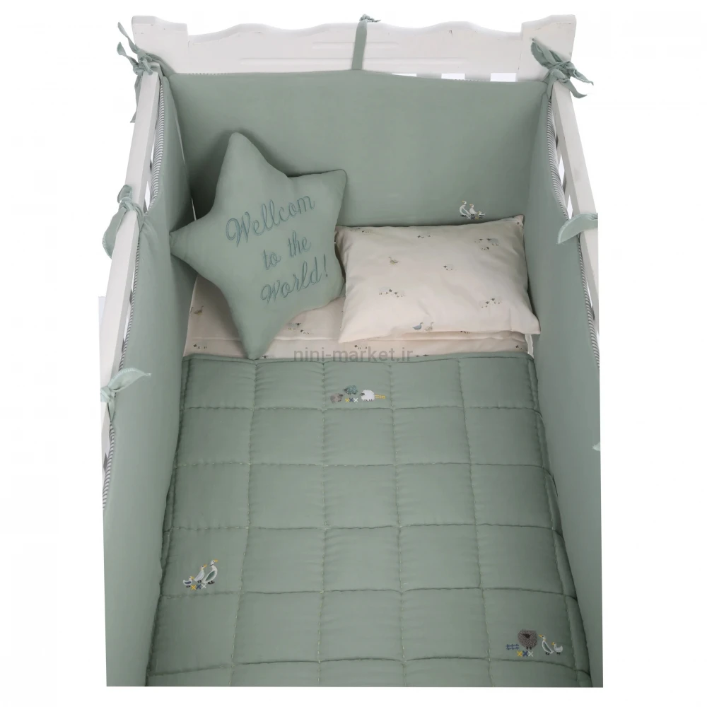ست روتختی 8 تيکه طرح مرغابی پارچه موسلين رنگ سبز ايسيز Isiz