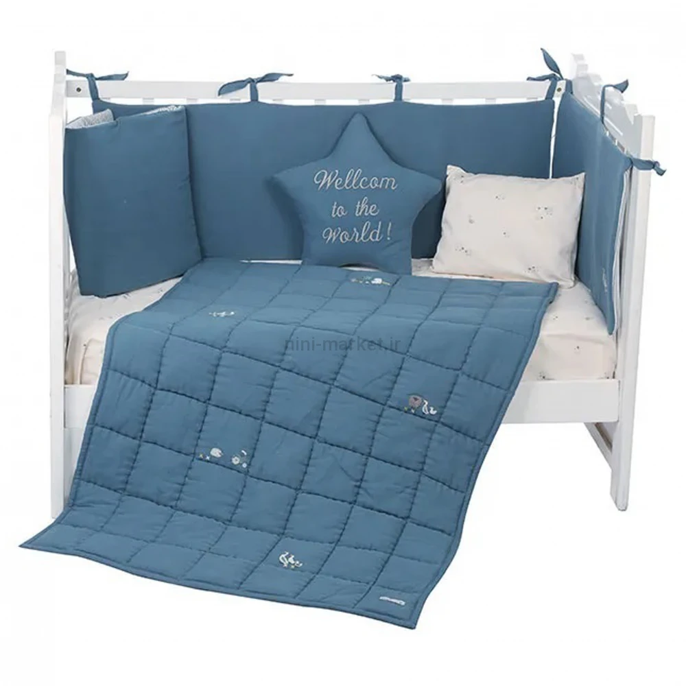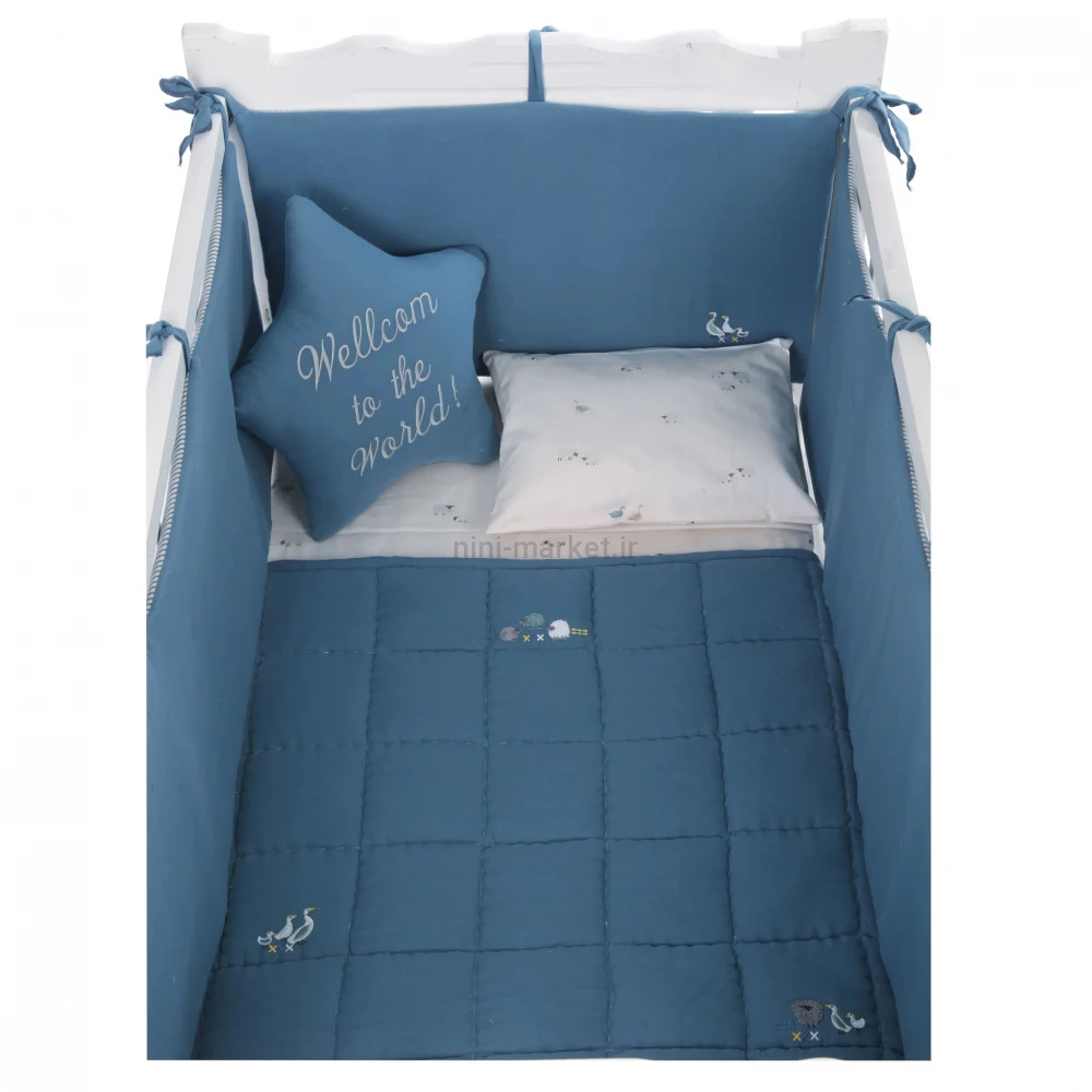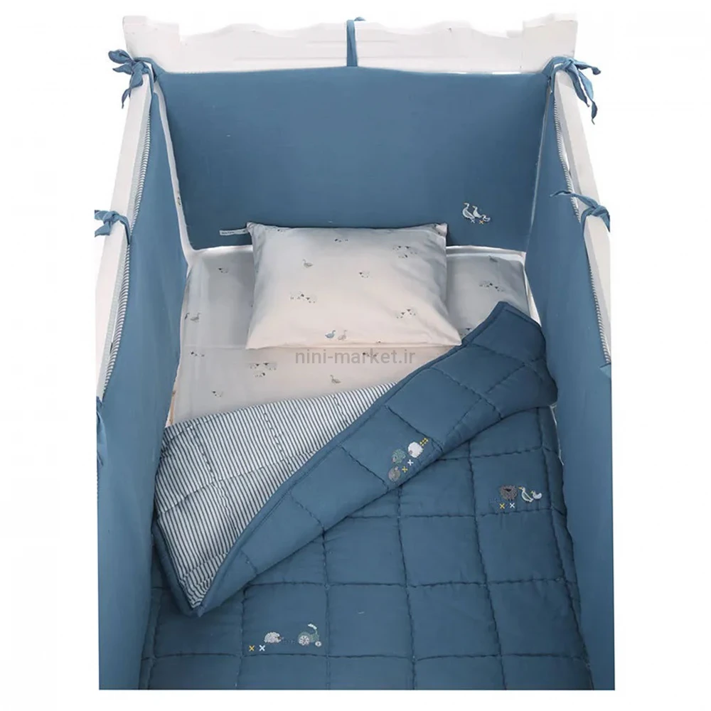 ست روتختی 8 تيکه طرح مرغابی پارچه موسلين رنگ سرمه ای ايسيز Isiz