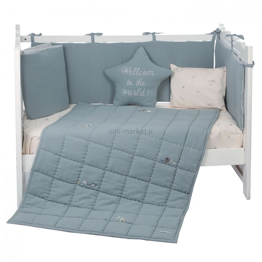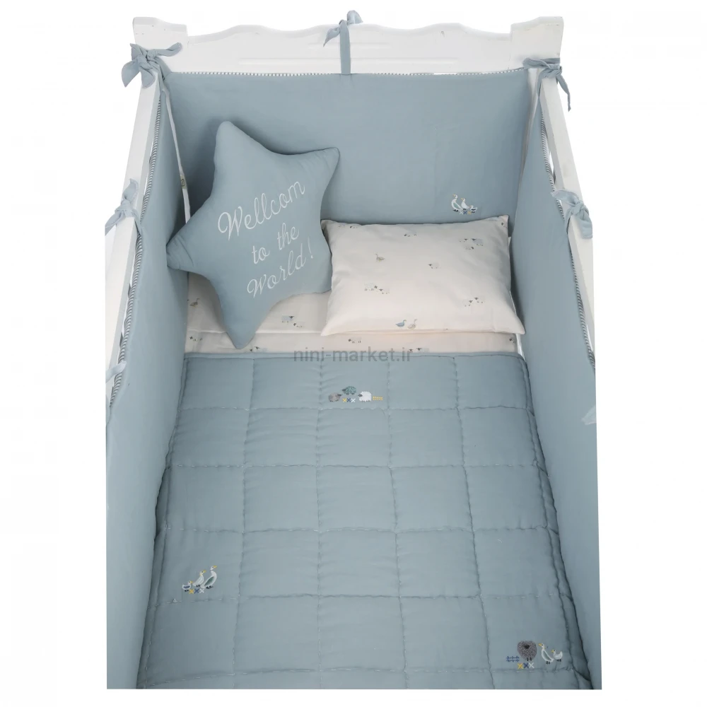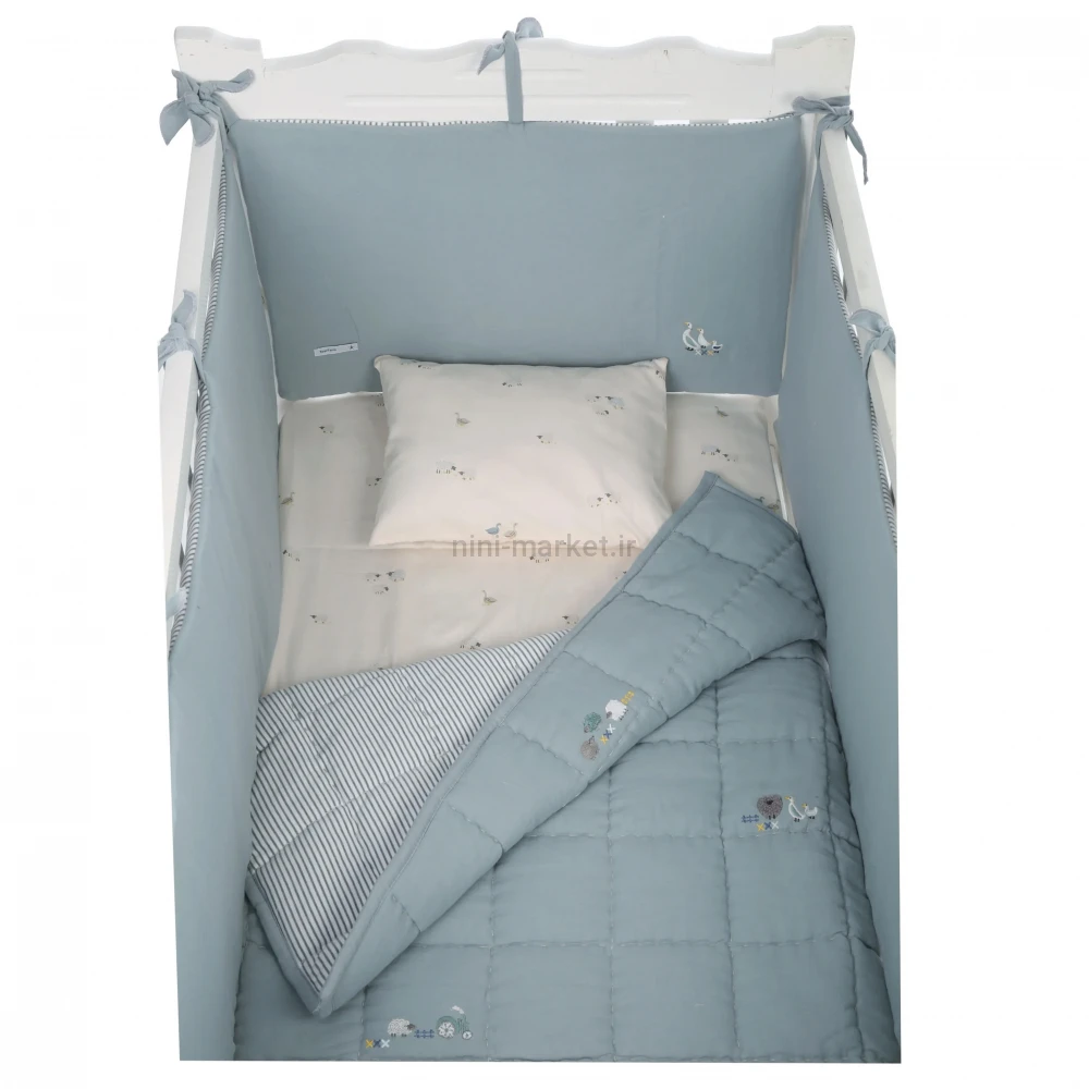 ست روتختي 8 تيکه طرح مرغابی پارچه موسلين رنگ کله غازی ايسيز Isiz