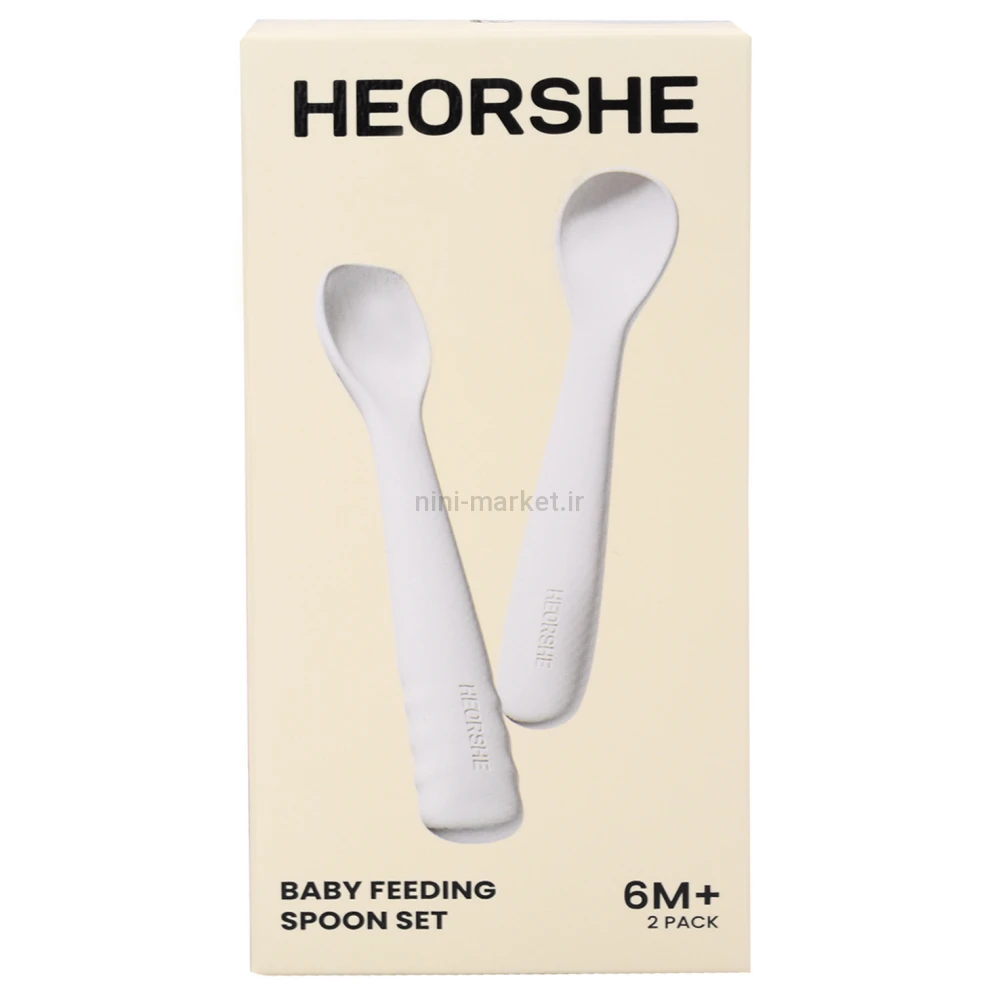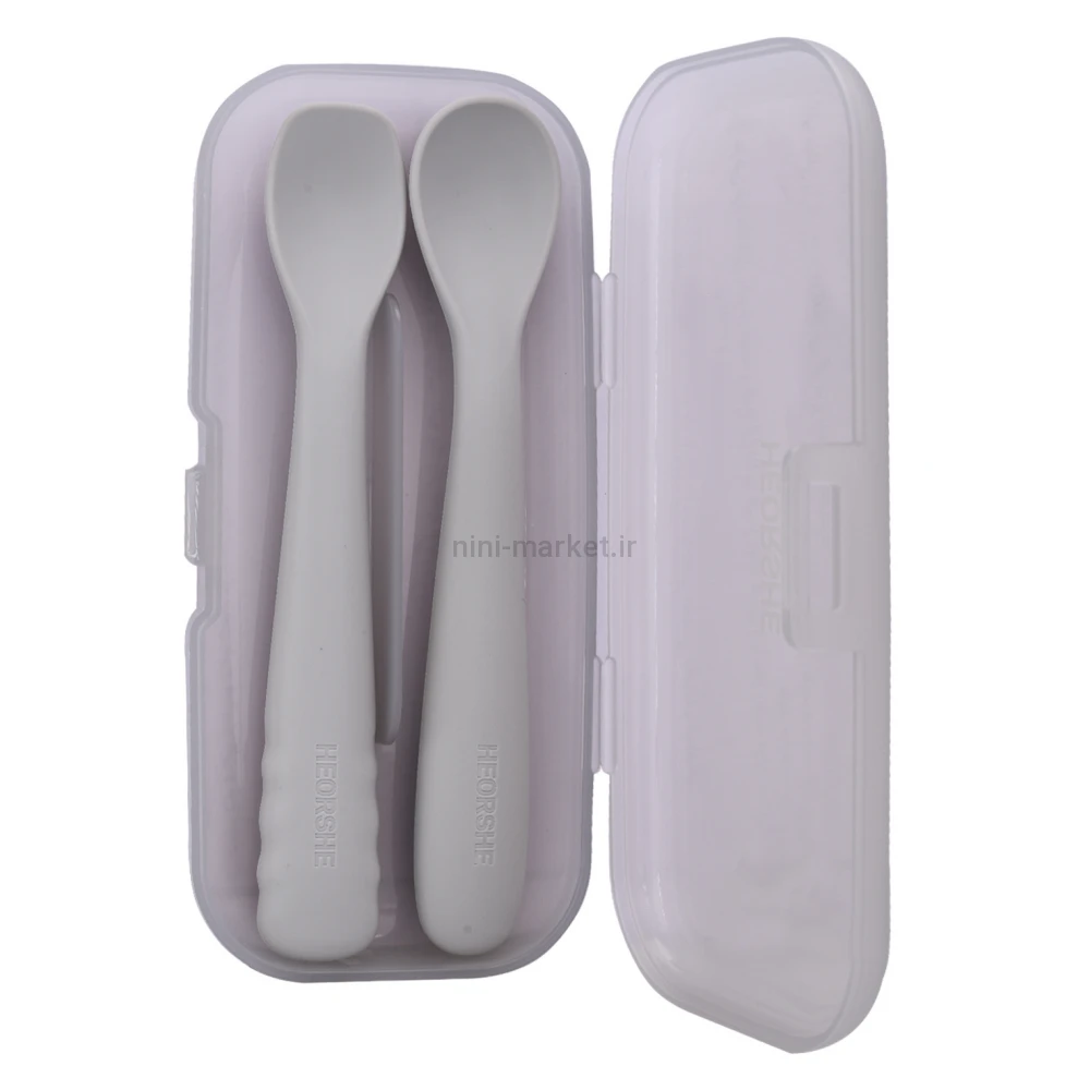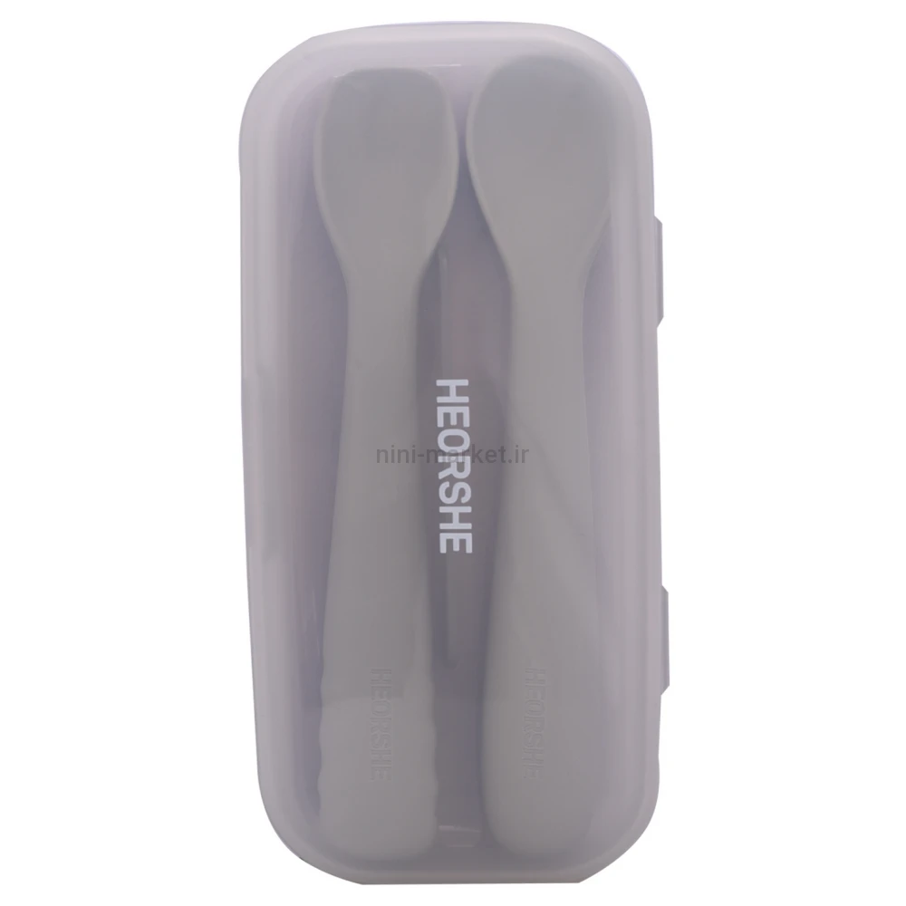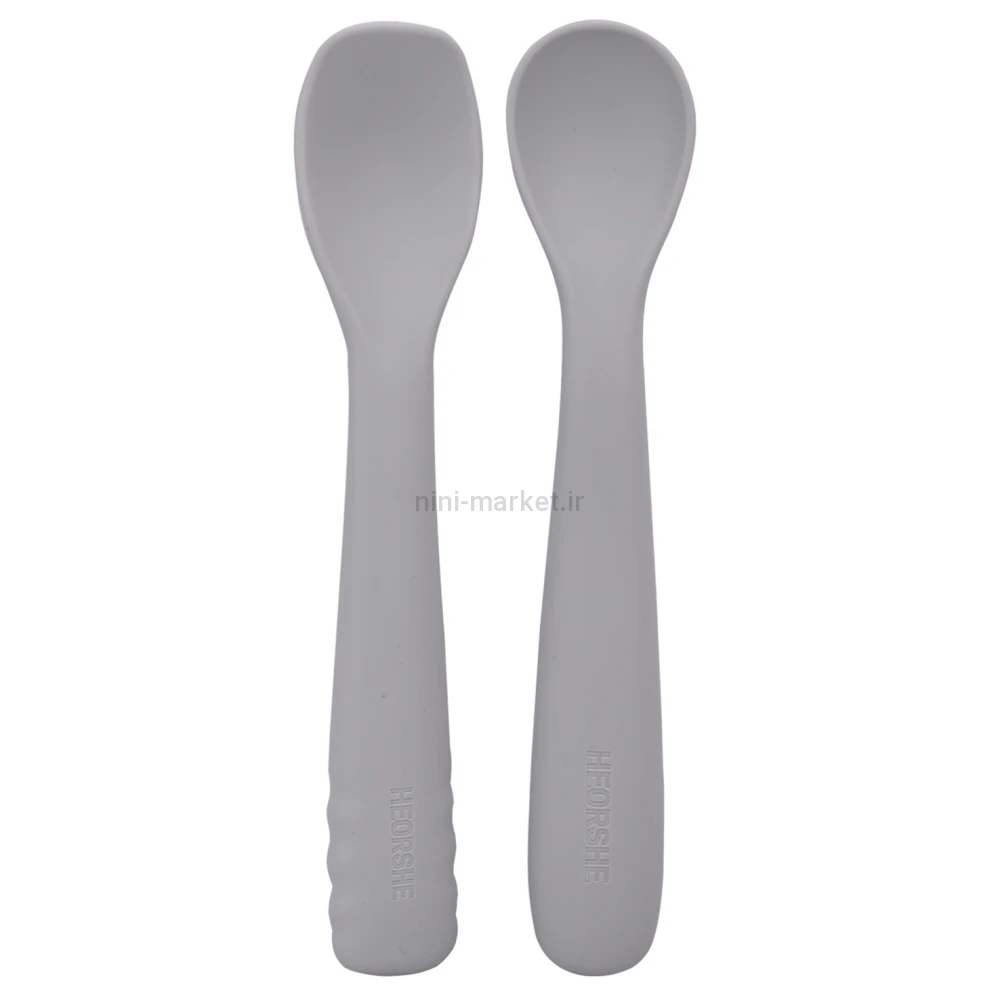 ست قاشق دو عددی سیلیکونی رنگ طوسی هی اور شی heorshe