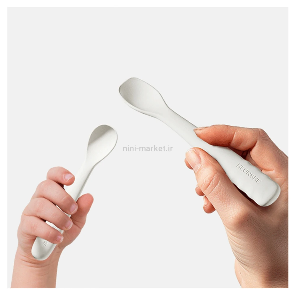 ست قاشق دو عددی سیلیکونی رنگ طوسی هی اور شی heorshe مناسب کودکان 6 ماه به بالا می باشد، لبه های قاشق آن کاملا نرم بوده و مناسب فک و دهان کودکان طراحی شده. سبکی این قاشق و طراحی زیبا و جذب کننده آن کودک را ترغیب میکند که خودش از این قاشق استفاده کند. قاشق های سیلیکونی نرم و انعطاف پذیر ویژه آموزش به کودکان می باشد . شما می توانید با خیال راحت این قاشق را در دستگاه استریل قرار دهید. این مجموعه قاشق از برند هیاورشی از مواد ایمن برای استفاده غذا، با طراحی معقول، تمیز کردن آسان و دوام بالا ساخته شده است.