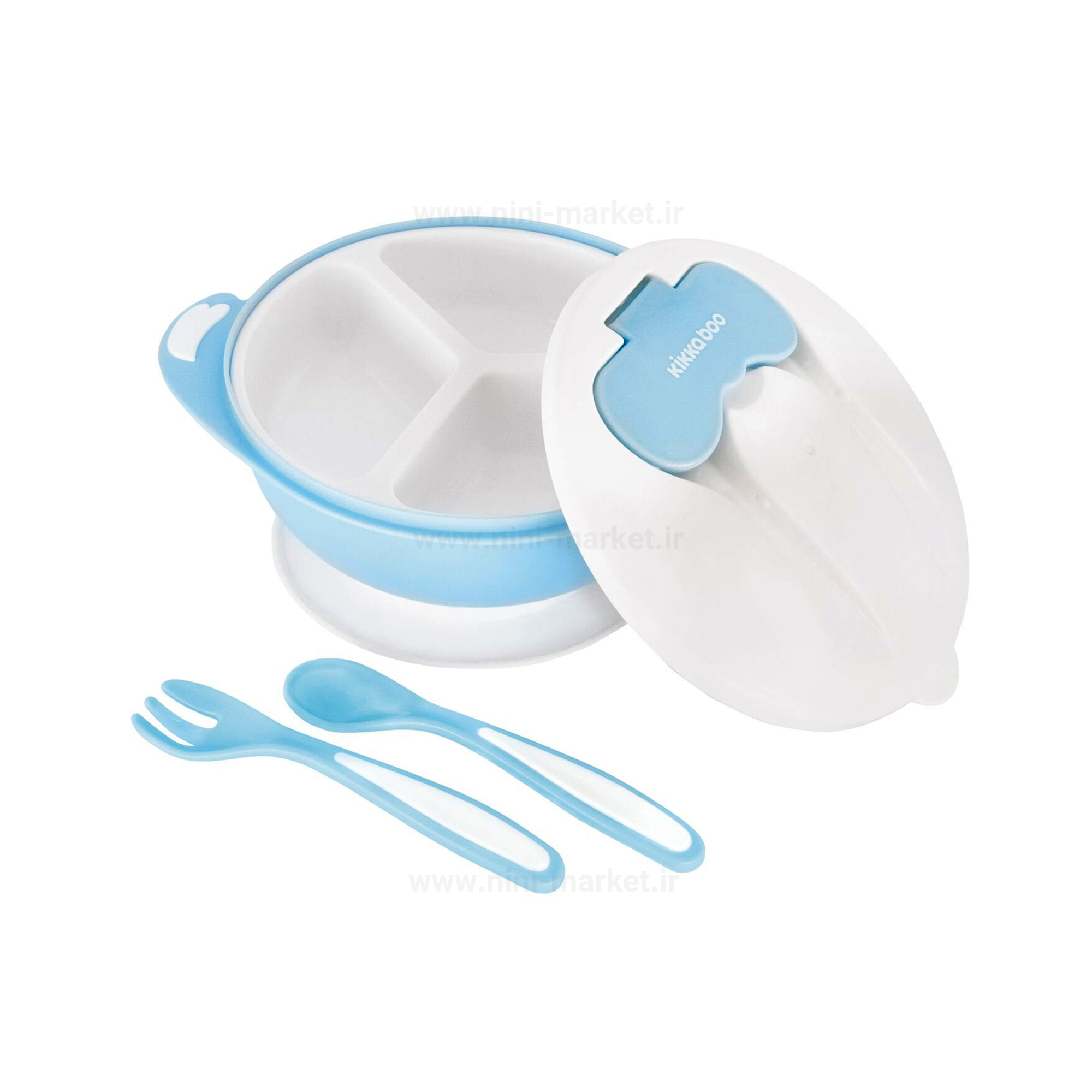 ظرف غذا با قاشق چسبان رنگ آبی کیکابو Kikkaboo