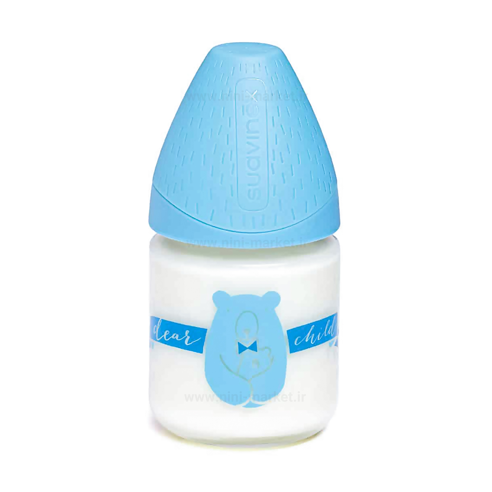 شیشه شیر پیرکس 120 میل طرح خرس رنگ آبی سواوینکس Suavinex