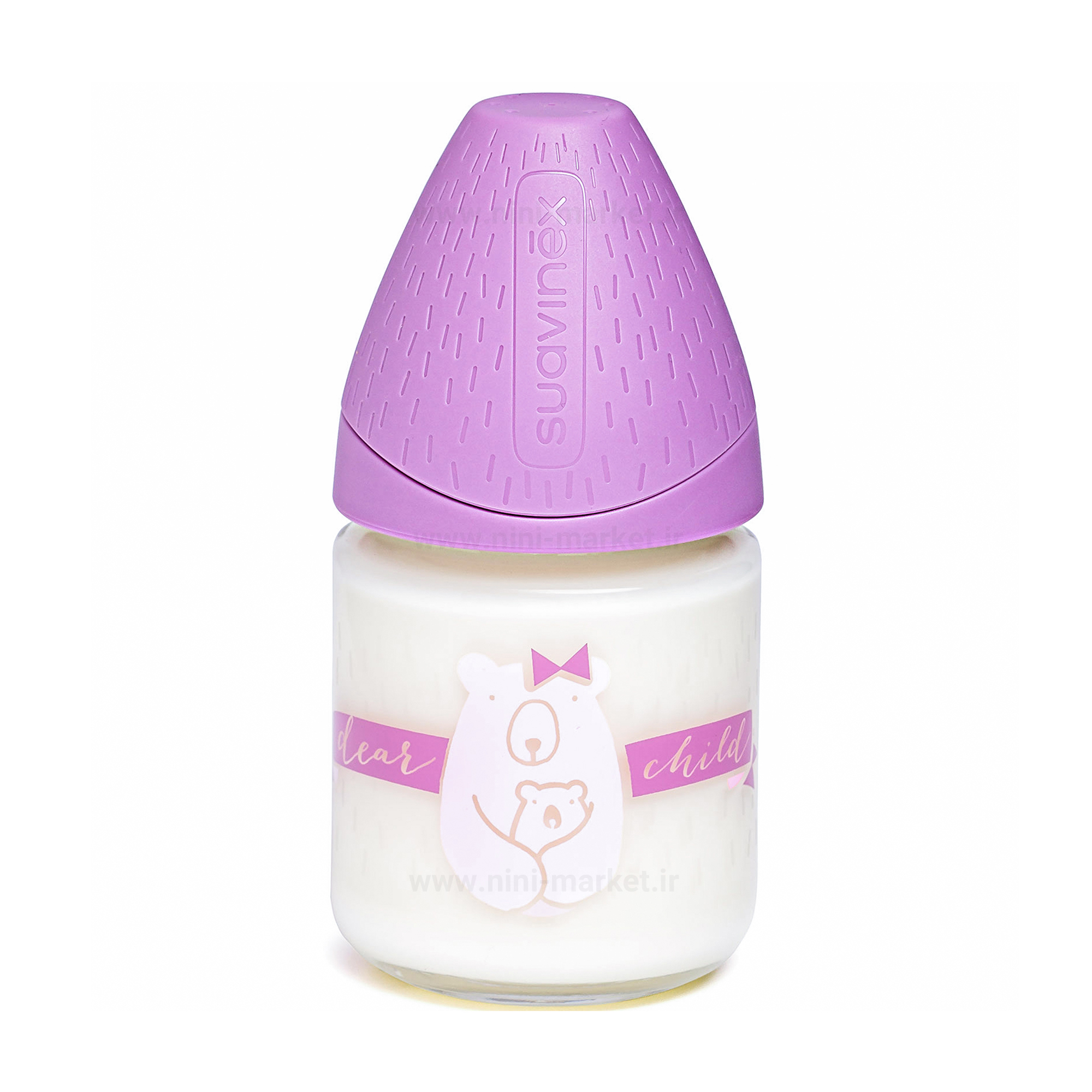 شیشه شیر پیرکس 120 میل طرح خرس رنگ بنفش سواوینکس Suavinex