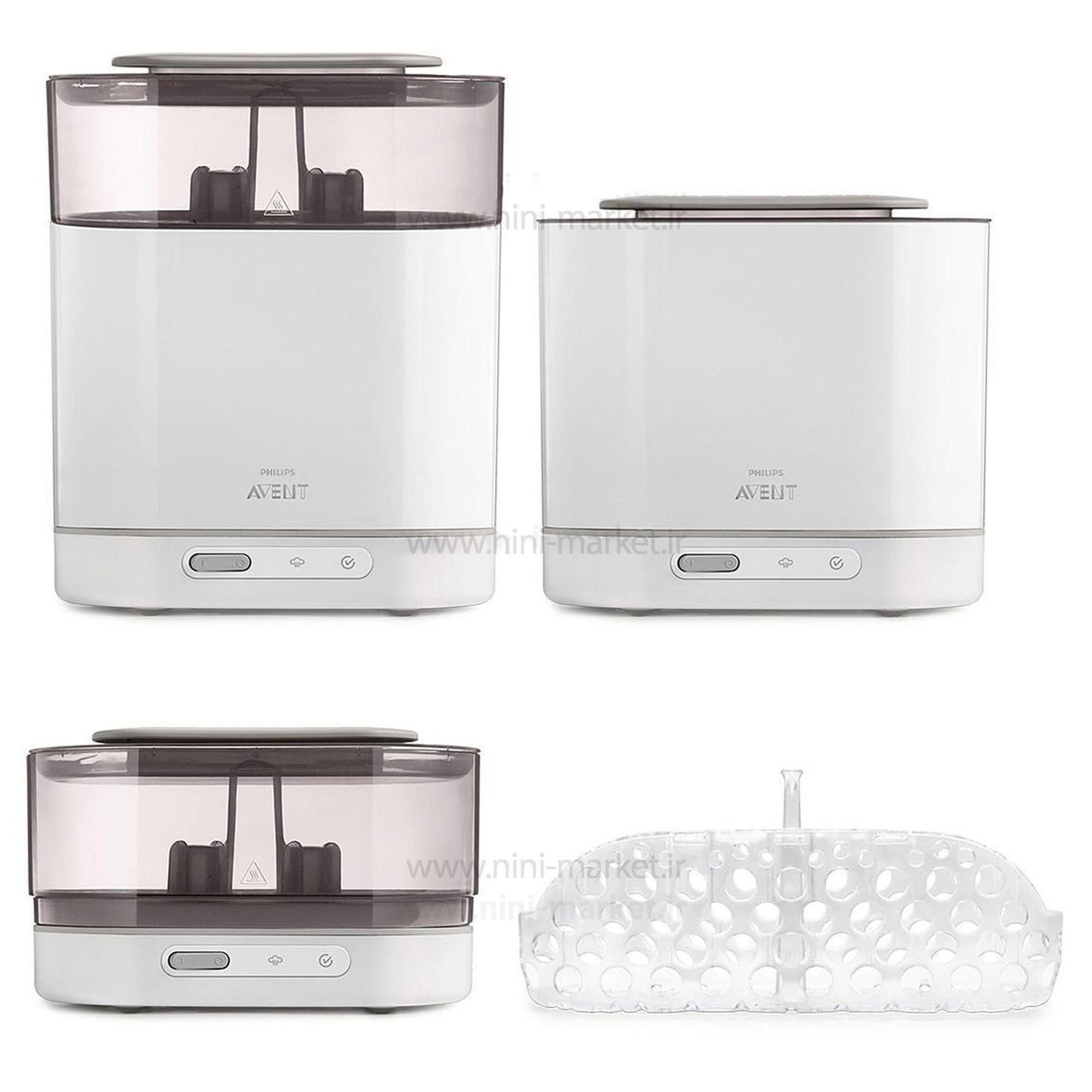 استریل کننده کودک ۴ در ۱ اونت به شما این امکان را میدهد تا به آسانی شیشه شیر ها را در کنار هم نگهداری کنید. همچنین باز و بسته کردن دستگاه بسیار راحت بوده و فضای کمی از آشپزخانه شما را اشغال میکند. دستگاه شامل یک سبد کوچک است که میتوان شیشه شیر ها را درون آن٬ در داخل ماشین ظرفشویی قرار داده و پس از شستشو در داخل دستگاه استریل کننده بگذارید.