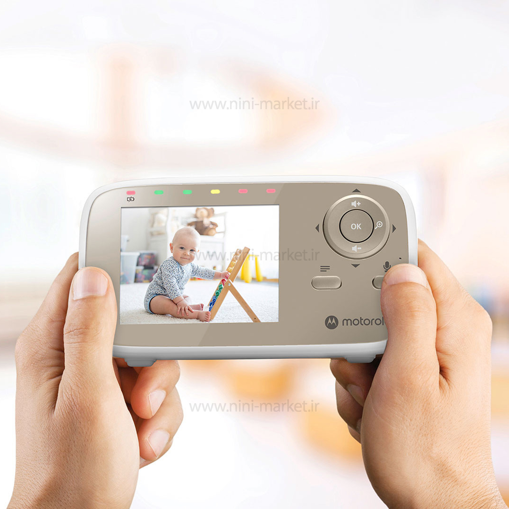 از ویژگی های منحصر به فرد این پیجر تصویری موتورولا میتوان به این موارد اشاره کرد: محدوده دمایی برای کارکرد صحیح : 0 تا 50 درجه سانتی گراد، دارای سنسور حرارتی ، حالت دید در شب، تا محدوده 200 متر محیط داخلی پشتیبانی میکند و در محیط بیرون تا محدوده 300 متر را پشتیبانی میکند، دارای کنترل صدا، باند فرکانسی 2400 مگاهرتز، تصویر واضح در تاریکی ( دید در شب ) ، ارسال صدا از هر دو دستگاه و دارای نشانگر دما همراه با اخطار نیز دارد . مراقبت از فرزندان آن قدر مسئولیت سنگینی به دنبال دارد که فکر آن یک لحظه هم شما را رها نمی کند؛ یک لحظه حتی در خواب! حالا اگر محل خواب کودکتان از اتاق شما دور باشد، این موضوع پررنگ تر هم می شود. همین فکر و خیالات و دغدغه باخبر بودن از لحظه لحظه خواب و بیداری کودک بوده که باعث بروز نوآوری های زیادی در بازار لوازم کودک و سیسمونی شده است. با ما همراه شوید تا با وسیله ای به نام پیجر آشنا شوید. با استفاده از پیجر تصویری کودک راحتی و آرامش را به خود و کودکتان هدیه کنید. به کمک این دستگاه می توانیداز کودک فاصله داشته باشید اما کاملا از وضعیت و شرایط او مطلع و مراقب کودک دلبندتان باشید.