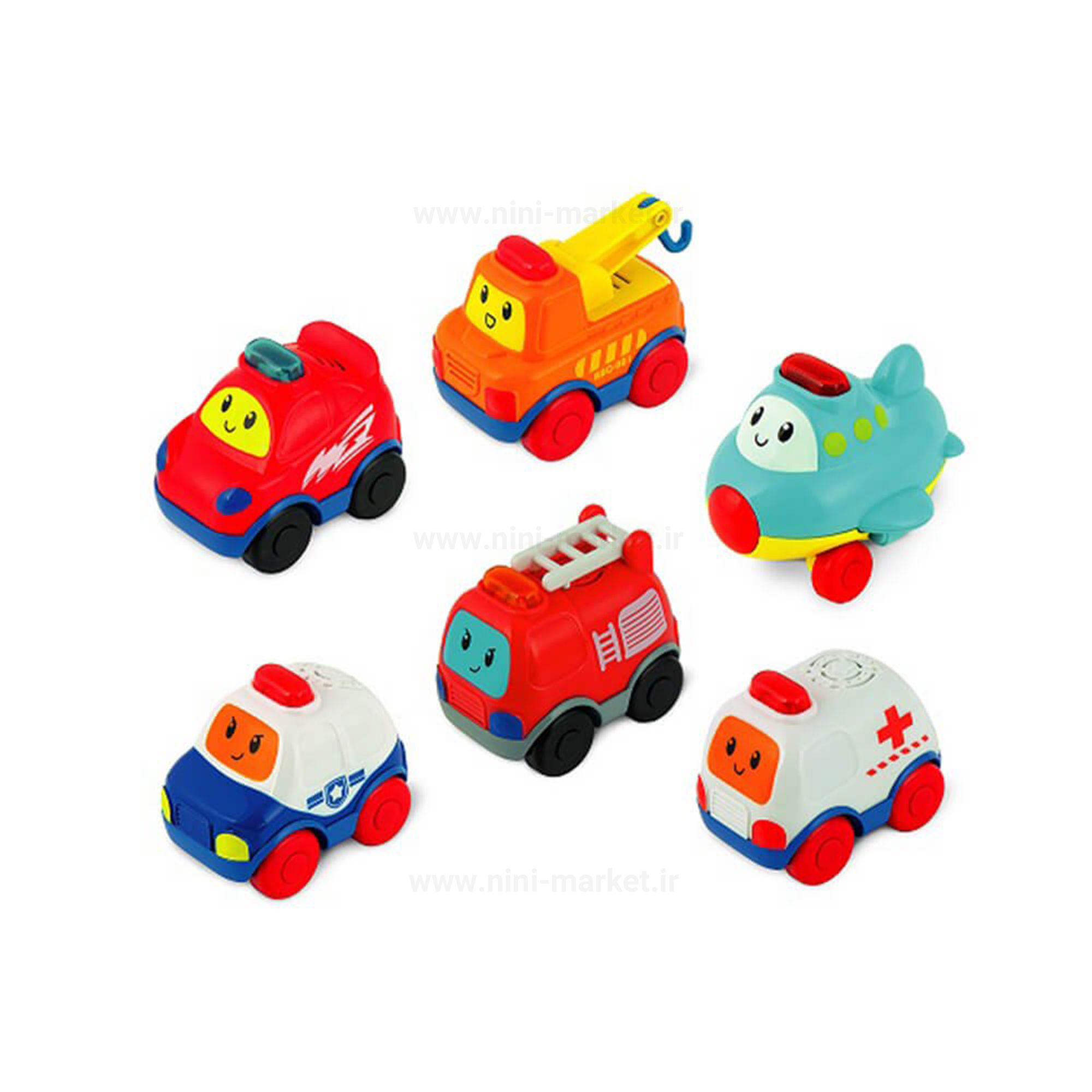 این اسباب بازی شامل سه طرح مختلف می باشد: اتوبوس، پلیس و آتش نشانی هستند . که موجب آشنایی کودکان با مشاغل می شوند این ماشین های پارچه ای عقب کش هستند و وقتی کودک ماشین را به عقب می کشد و سپس رها می کند ماشین به سرعت به جلو حرکت می کند. این ماشین های پارچه فاقد هرگونه لبه ی تیز و برنده است و دارای لبه های گرد می باشد که به کودک شما آسیبی نمی زند.