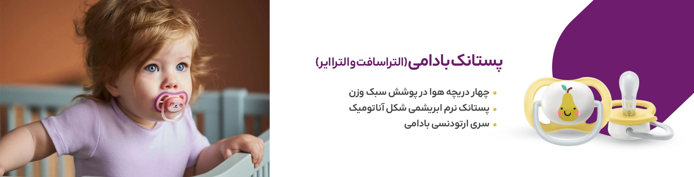پستانک تکی الترا ایر 18-6 ماه طرح بالن بنفش اونت Avent (فاقد جعبه)