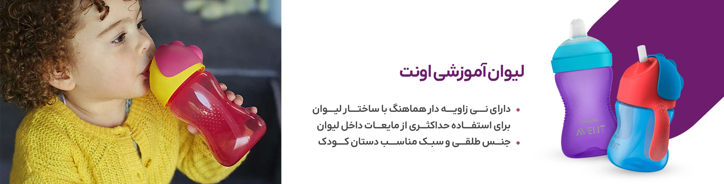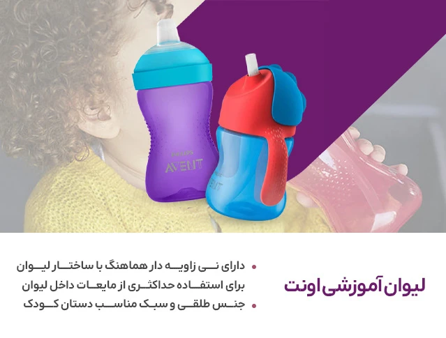لیوان آبمیوه خوری نی دار صورتی 300 میل اونت Avent